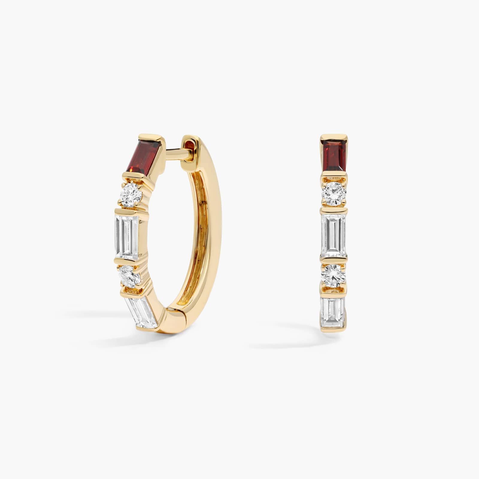 These hoop earrings bring more than 14k yellow gold and lab-grown diamond style. They also showcase personalized, special meaning with gemstone details. Choose one of 12 gemstones to set in these classic hoops. Pick a gemstone that represents your story, your family, your accomplishments, or what's uniquely important to you. Stackable and easy to care for, these personalized birthstone earrings are also excellent gifts.