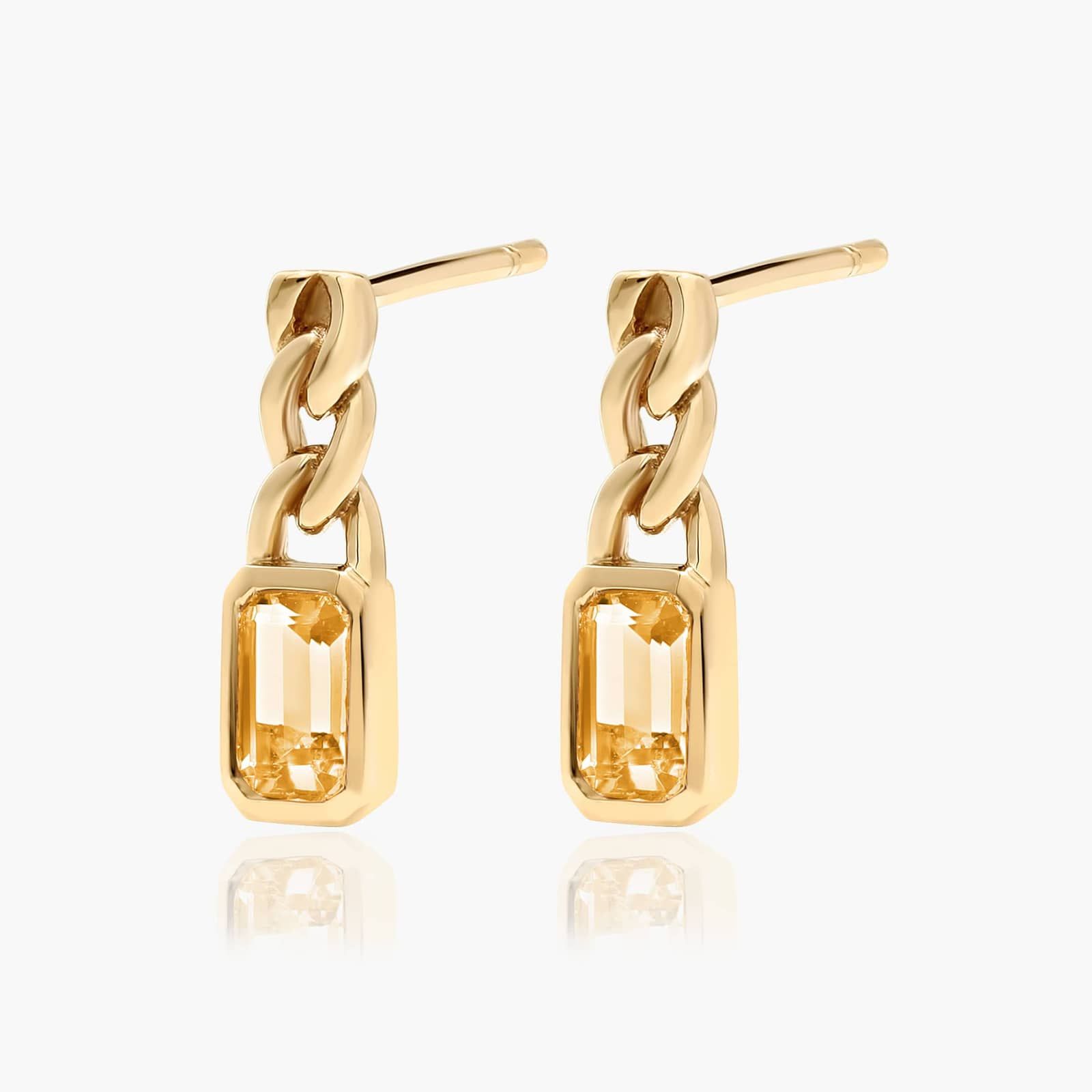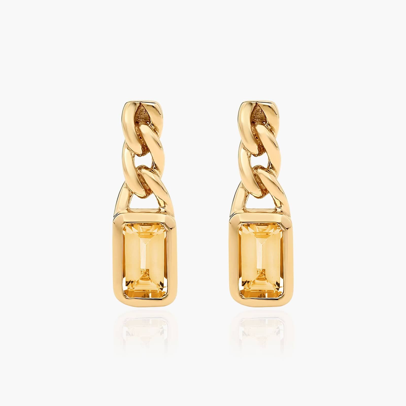 Radiant Reflections Citrine Curb Chain Stud Earrings In 14K Yellow Gold