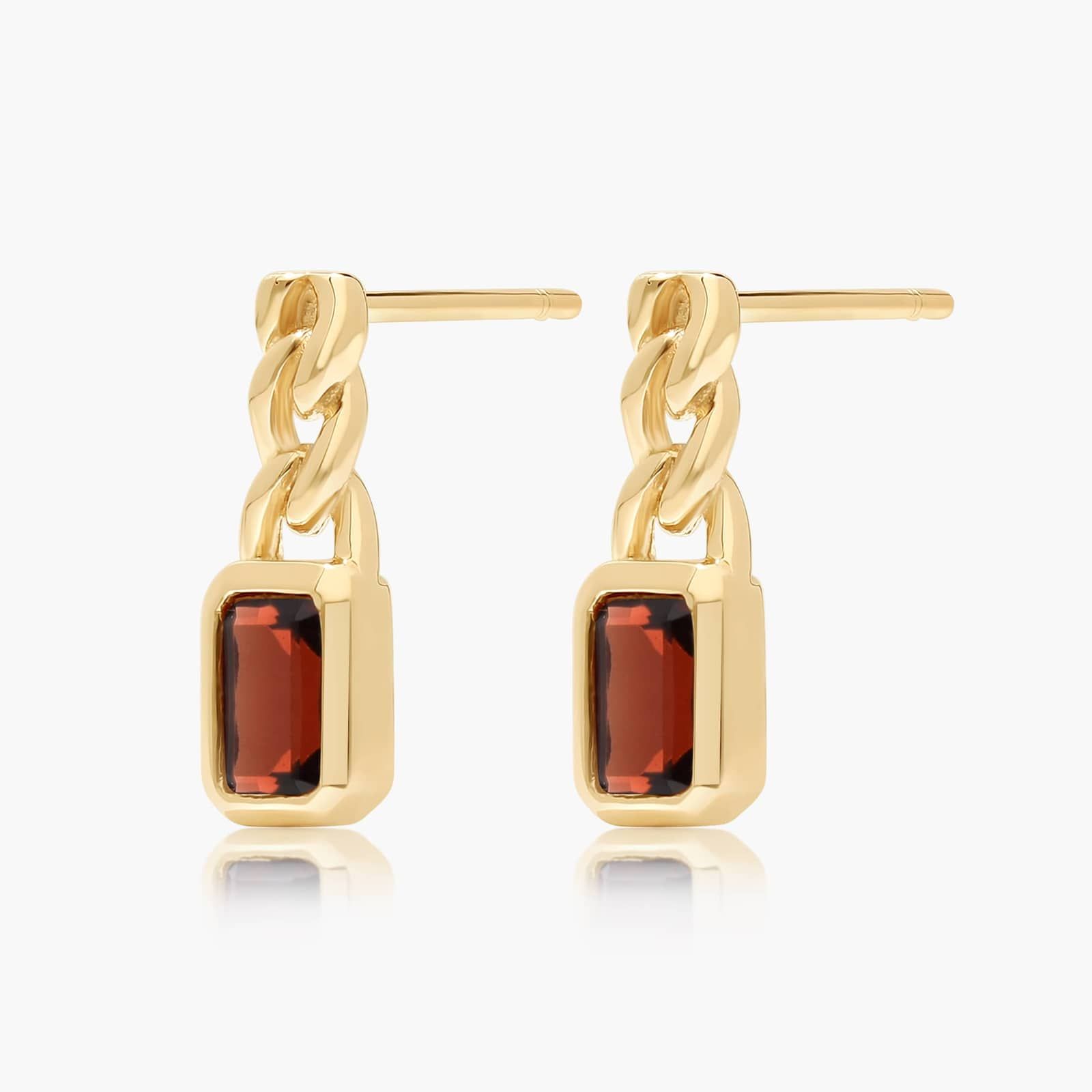 Radiant Reflections Garnet Curb Chain Stud Earrings In 14K Yellow Gold