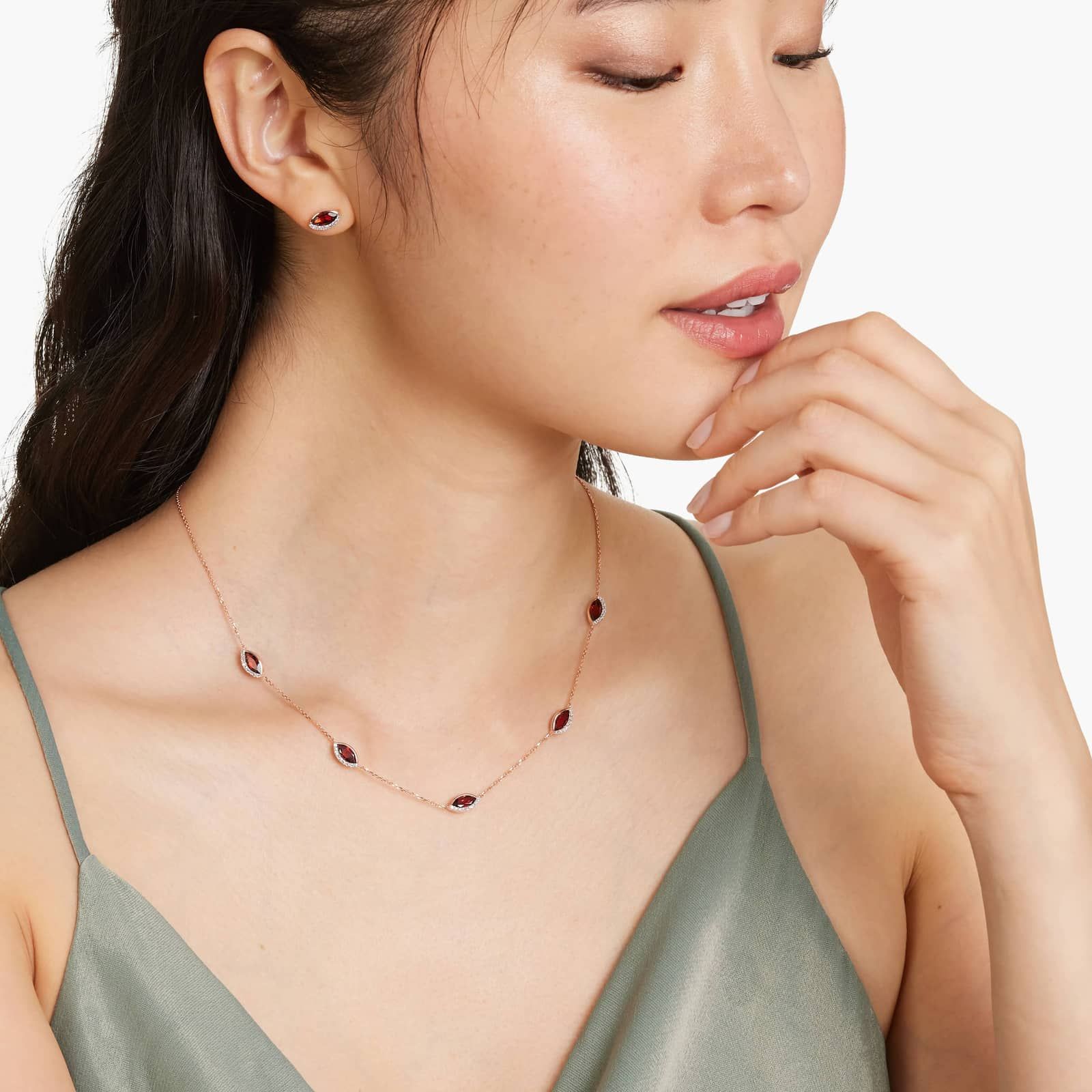Radiant Reflections Marquise Cut Garnet Earrings In 14K Rose Gold