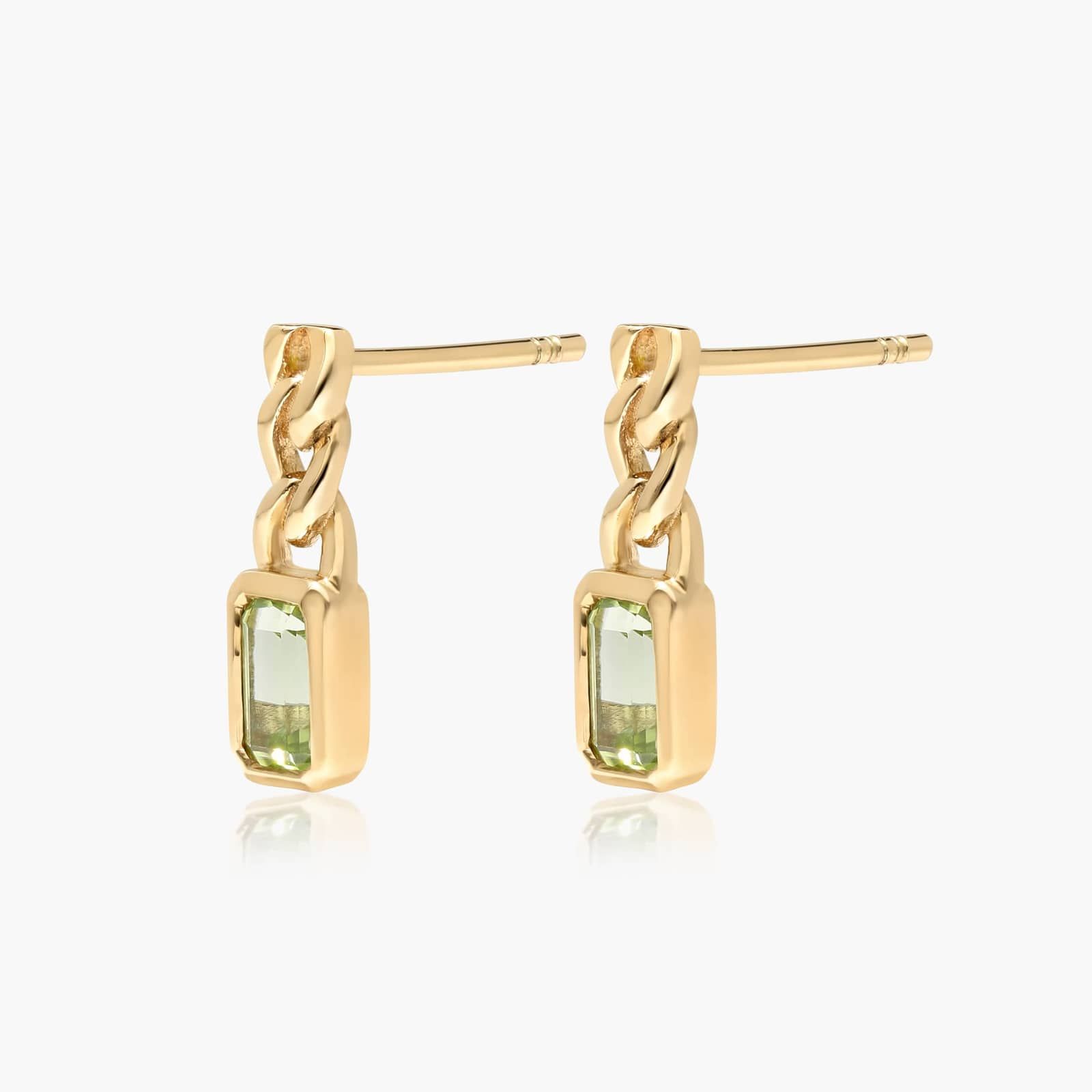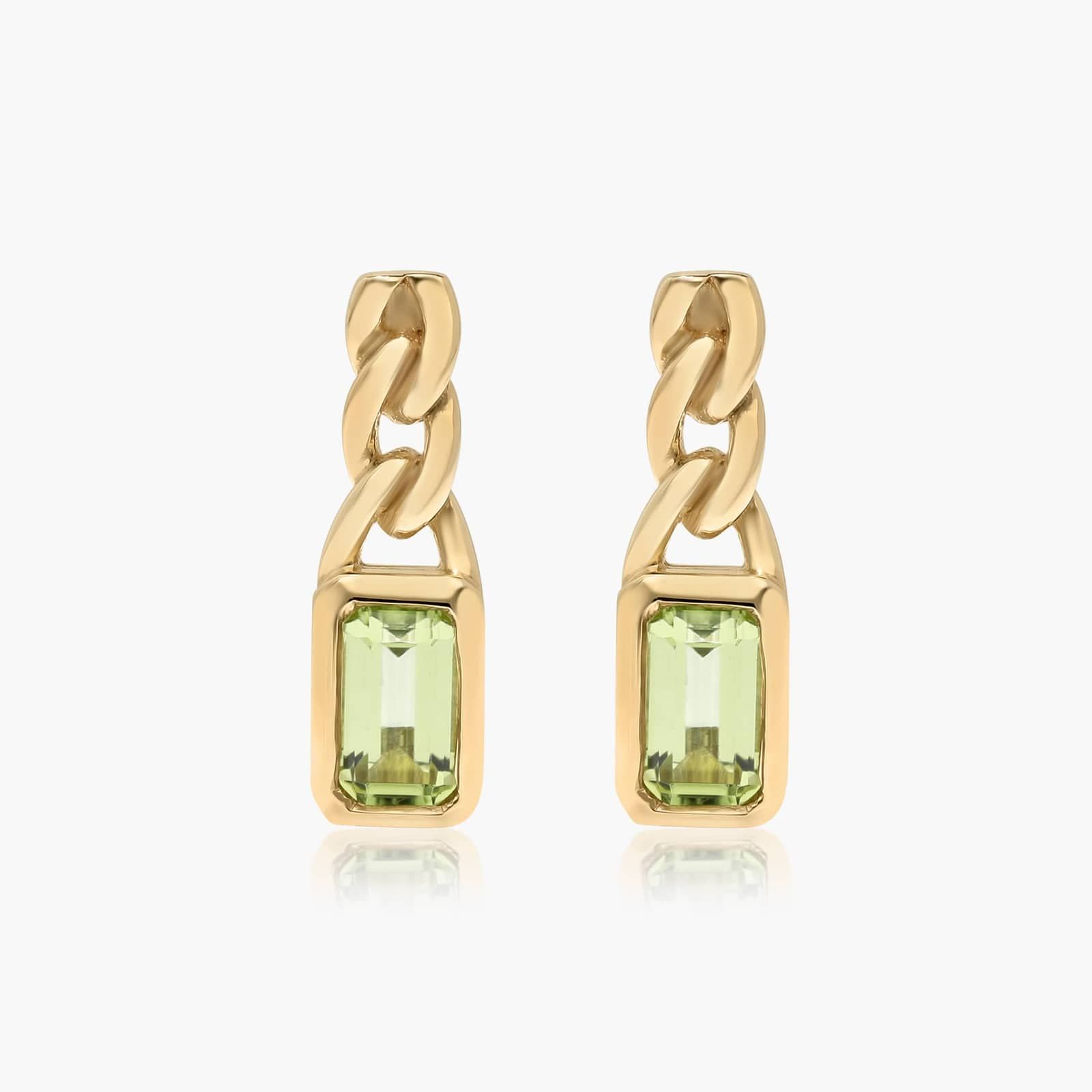 Radiant Reflections Peridot Curb Chain Stud Earrings In 14K Yellow Gold