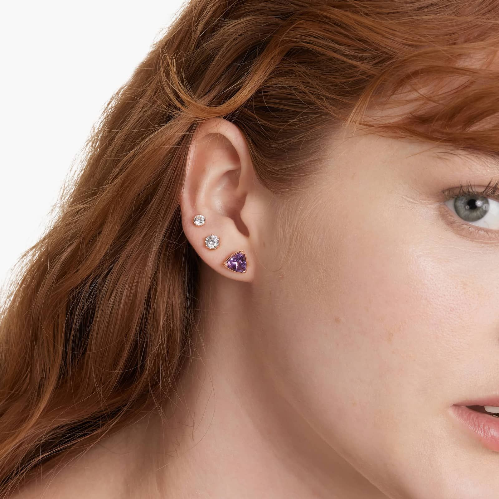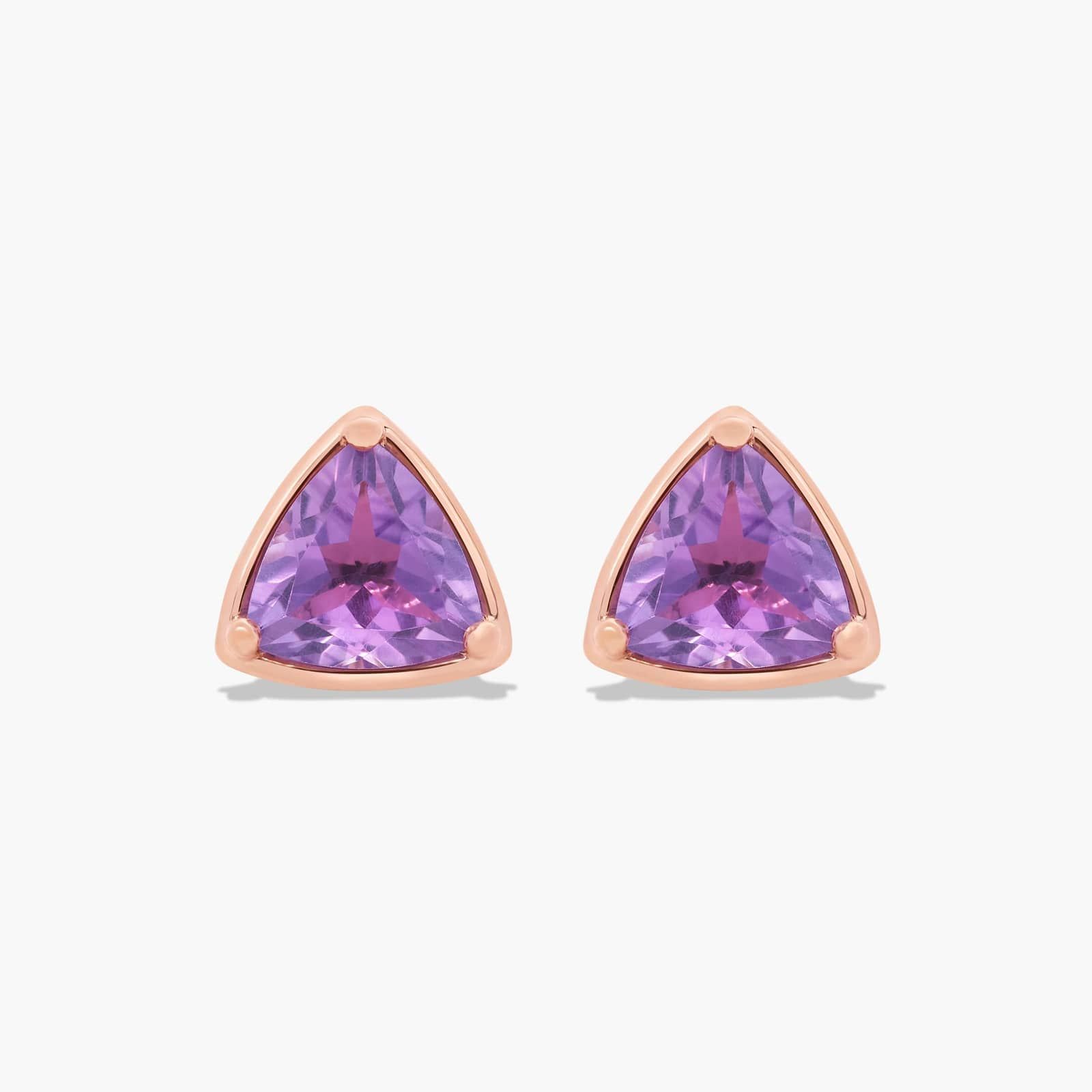 Radiant Reflections Trillion Cut Amethyst Stud Earrings In 14K Rose Gold