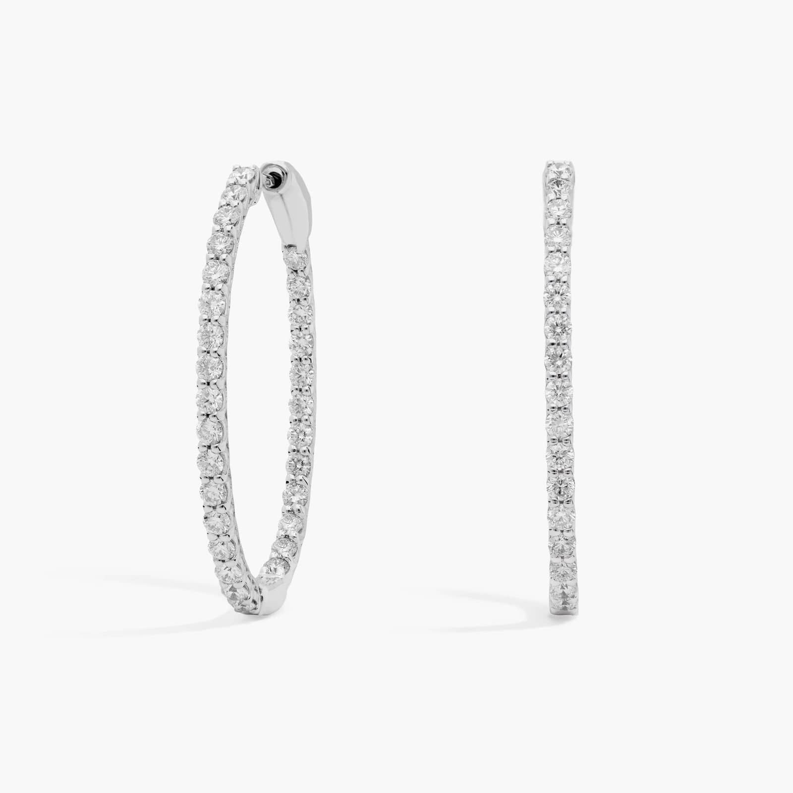 Round Diamond Hoop Earrings, 1 1/2 Inch Diameter in 14K White Gold (3 Ct. Tw.)