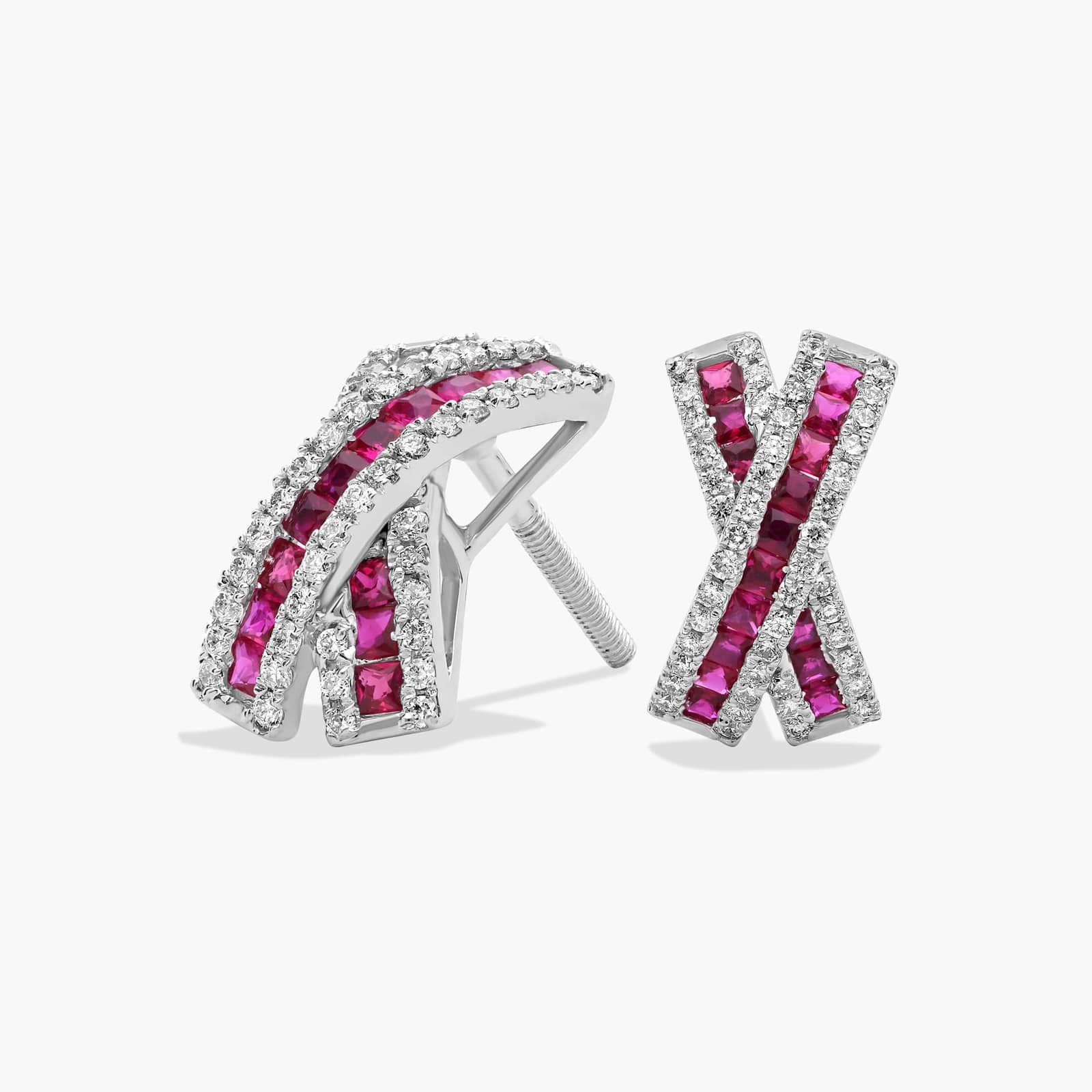 Ruby and Diamond Crossover X Earrings in 14k White Gold (1/2 Ct. Tw.)