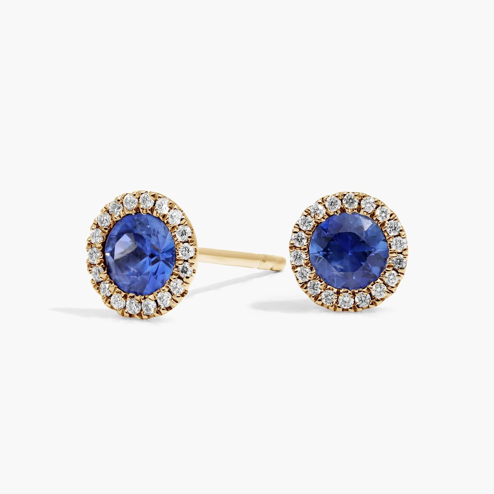 Sapphire and Diamond Halo Earrings in 14K Yellow Gold