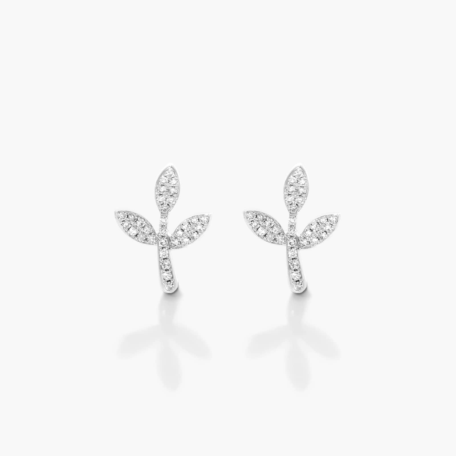 Three Leaves Diamond Earrings In 14K White Gold