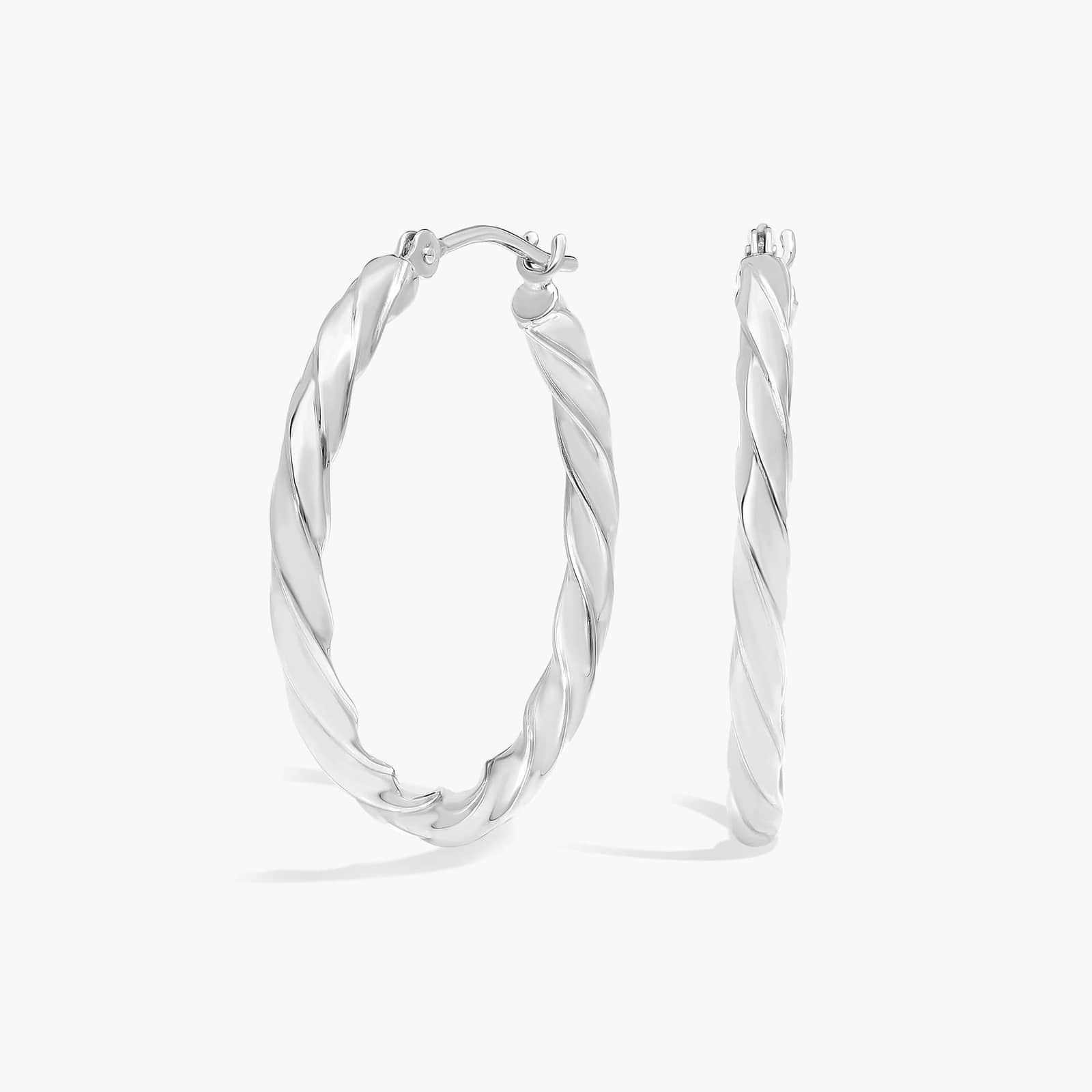 Twist Hoop Earrings (2x25mm) in 14K White Gold