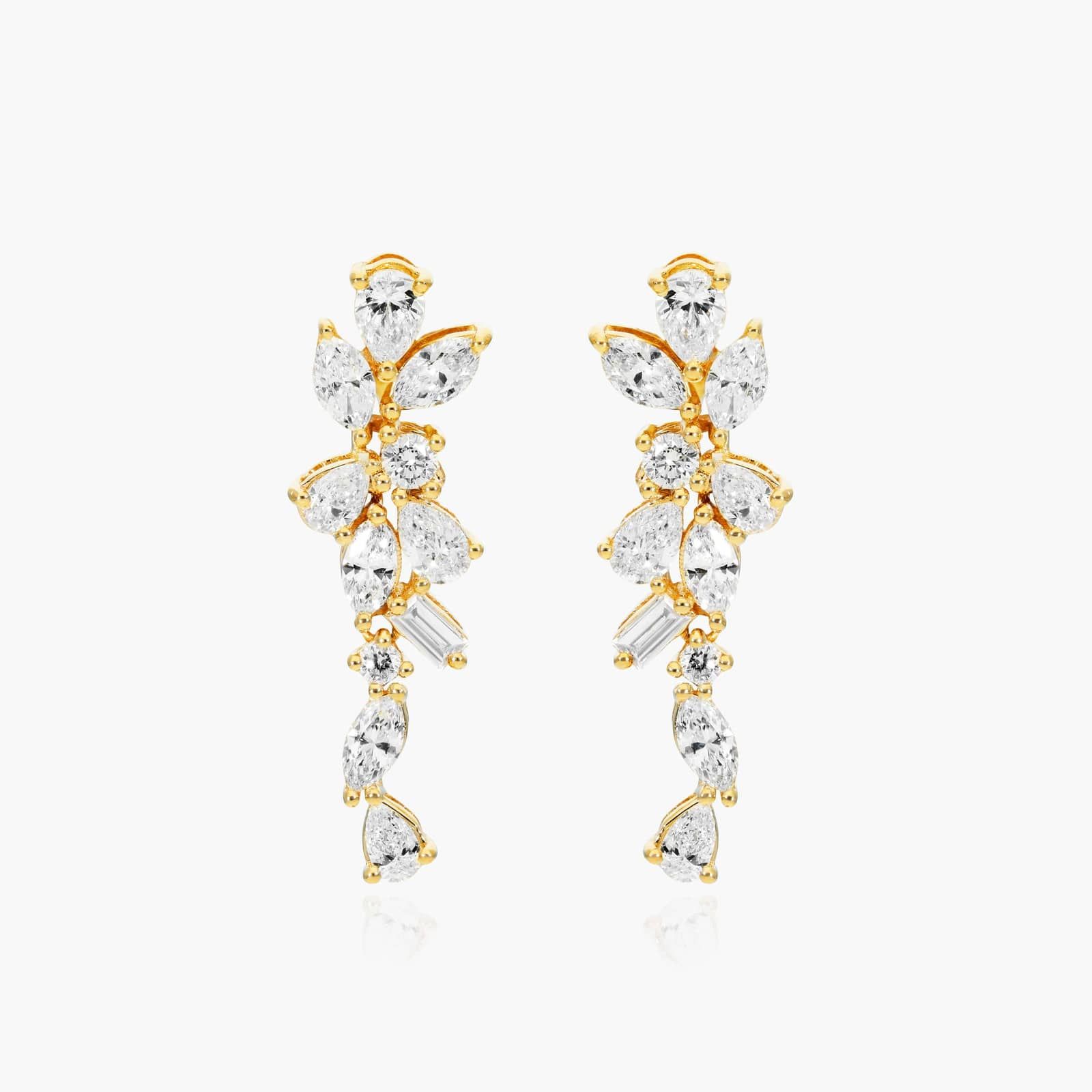 Whimsical Floral Cluster Diamond Drop Earrings In 14K Yellow Gold