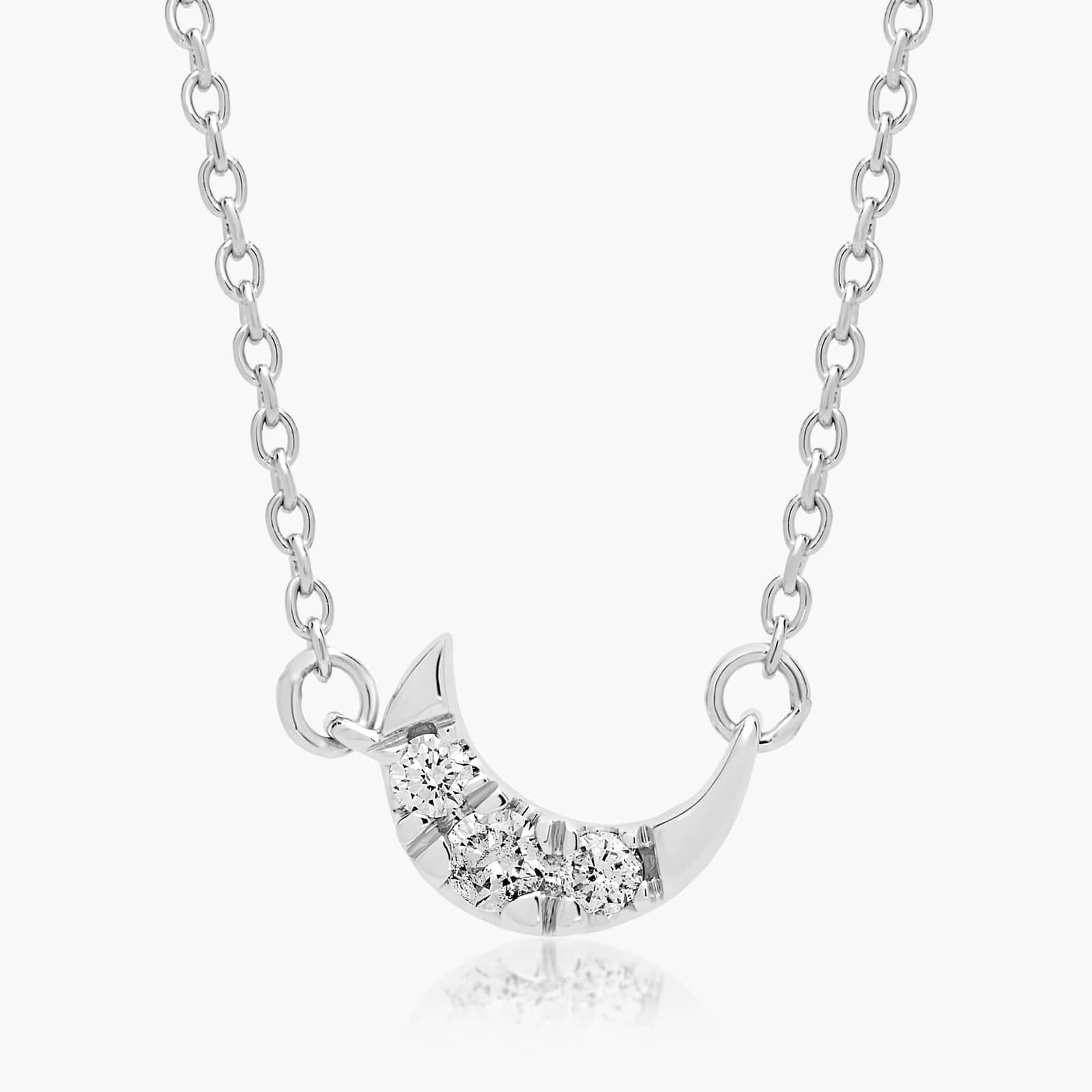 14K White Gold Dainty Diamonds Pavé Crescent Moon Necklace