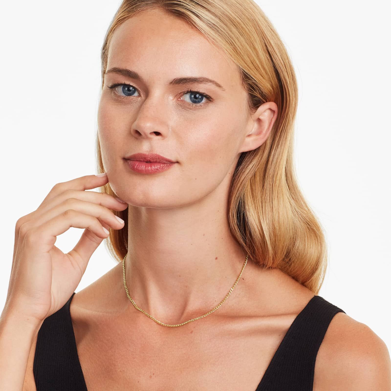 This classic 2.7mm Curb chain is the perfect mix of bold and classy. Crafted in 14K yellow gold, this versatile necklace adjusts from 12 to 17 inches with a silicone bead slide and closes with lobster claw clasp.