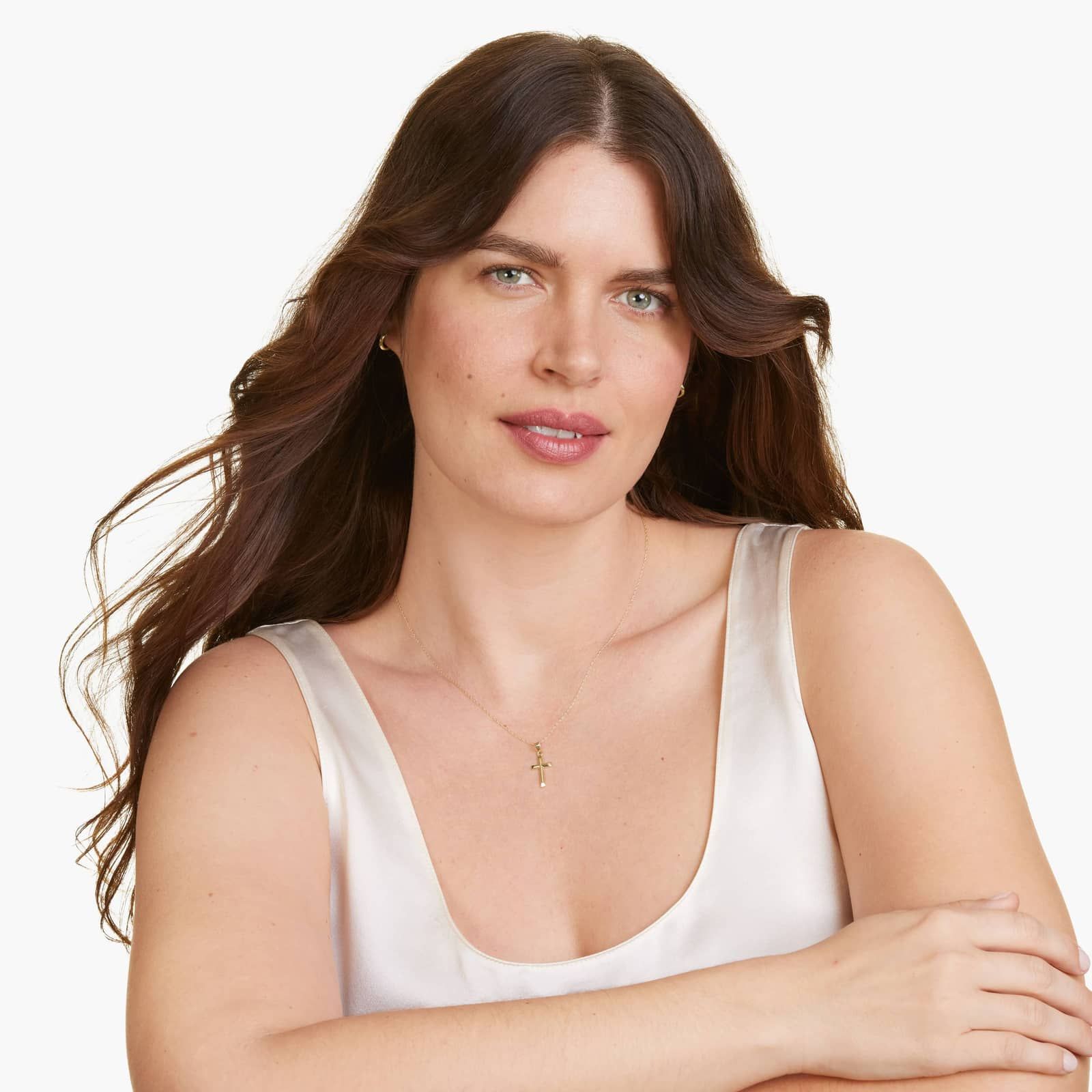 A truly timeless pieces. This gold cross pendant necklace is an elegant, stylish way to celebrate your faith. Wear it alone or layer it for a modern look.