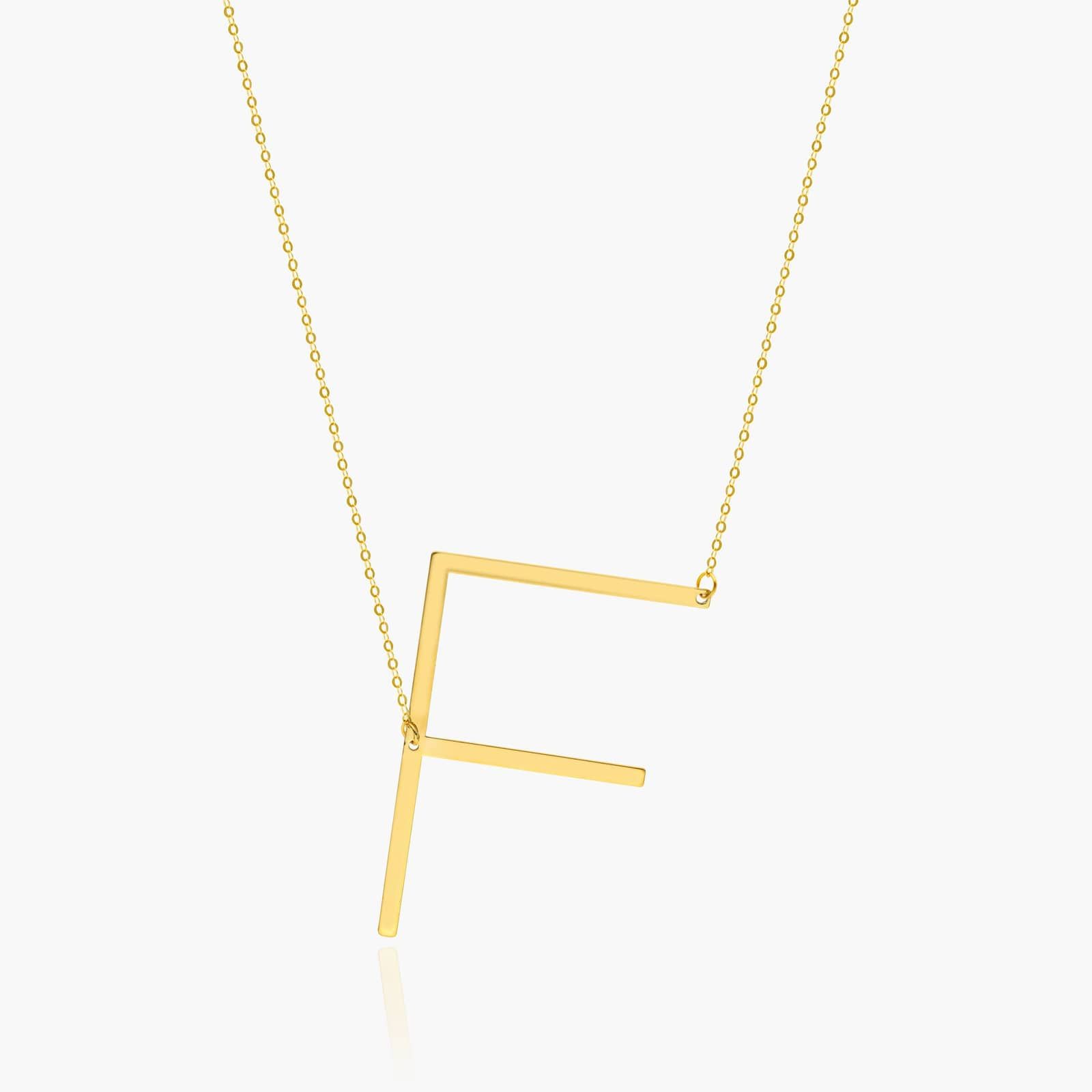 14K Yellow Gold Large Initial F Necklace