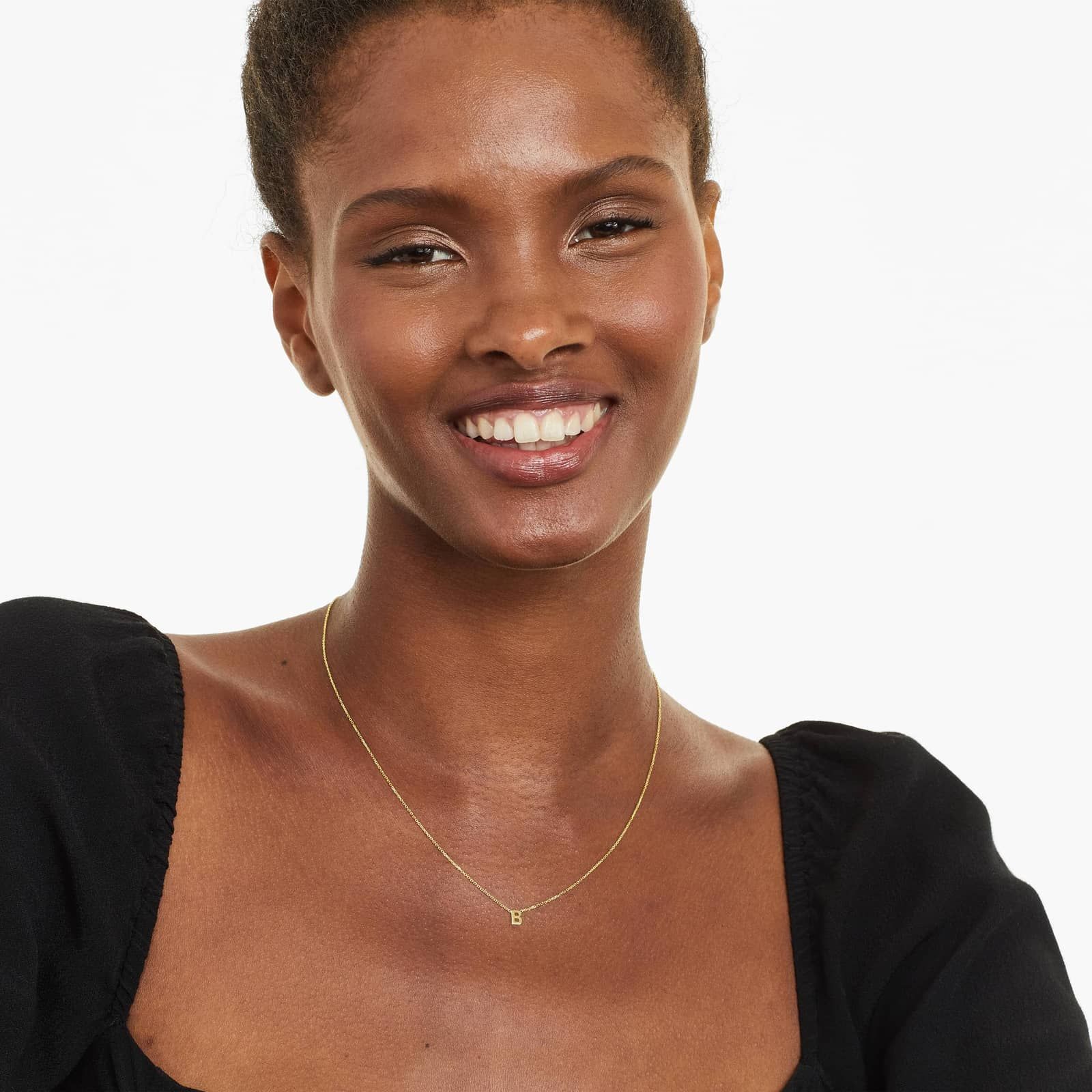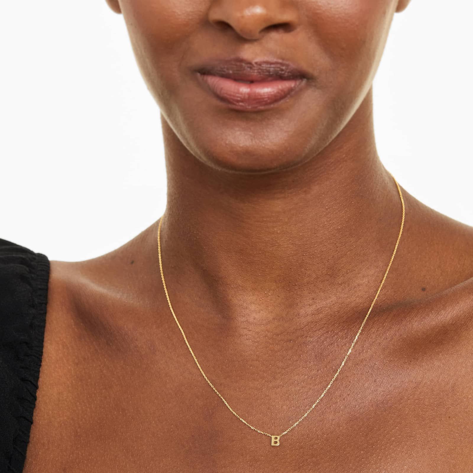 Letters make it personal. A initial necklace is the perfect staple to add to your collection. This mini initial necklace features an 18 inch chain that secures with a spring claps. Letter measures 5mm.
