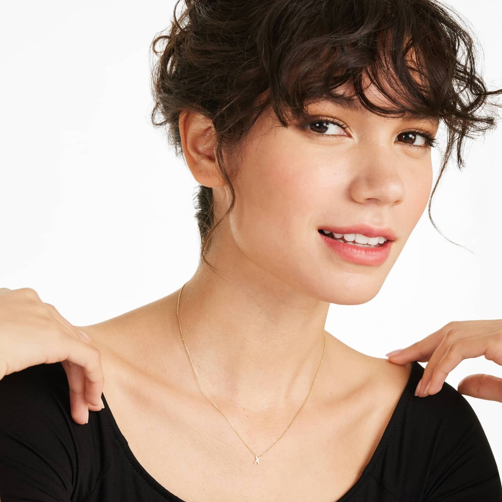 Letters make it personal. A initial necklace is the perfect staple to add to your collection. This mini initial necklace features an 18 inch chain that secures with a spring claps. Letter measures 5mm.