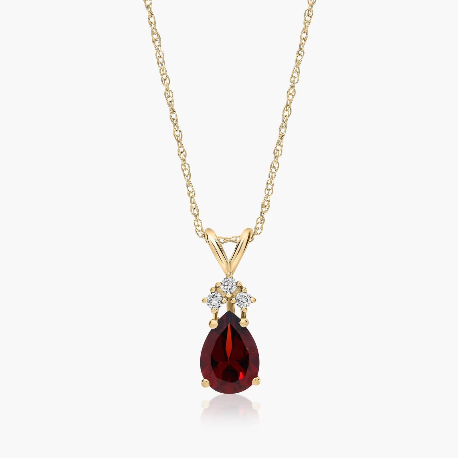 14K Yellow Gold Pear Shaped Garnet & Tri-Diamond Birthstone Pendant Necklace