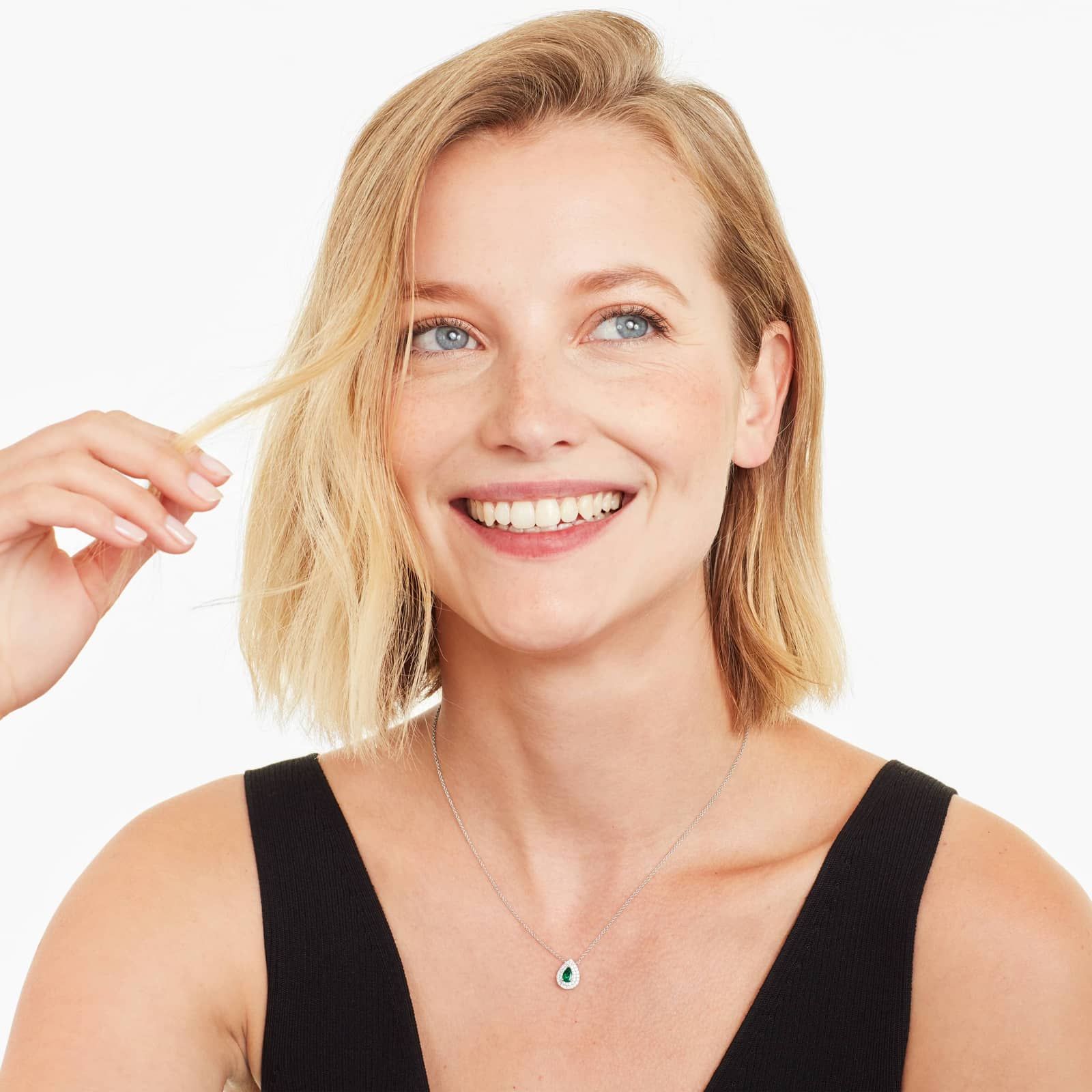 18K White Gold Pear Shape Emerald Double Diamond Halo Necklace