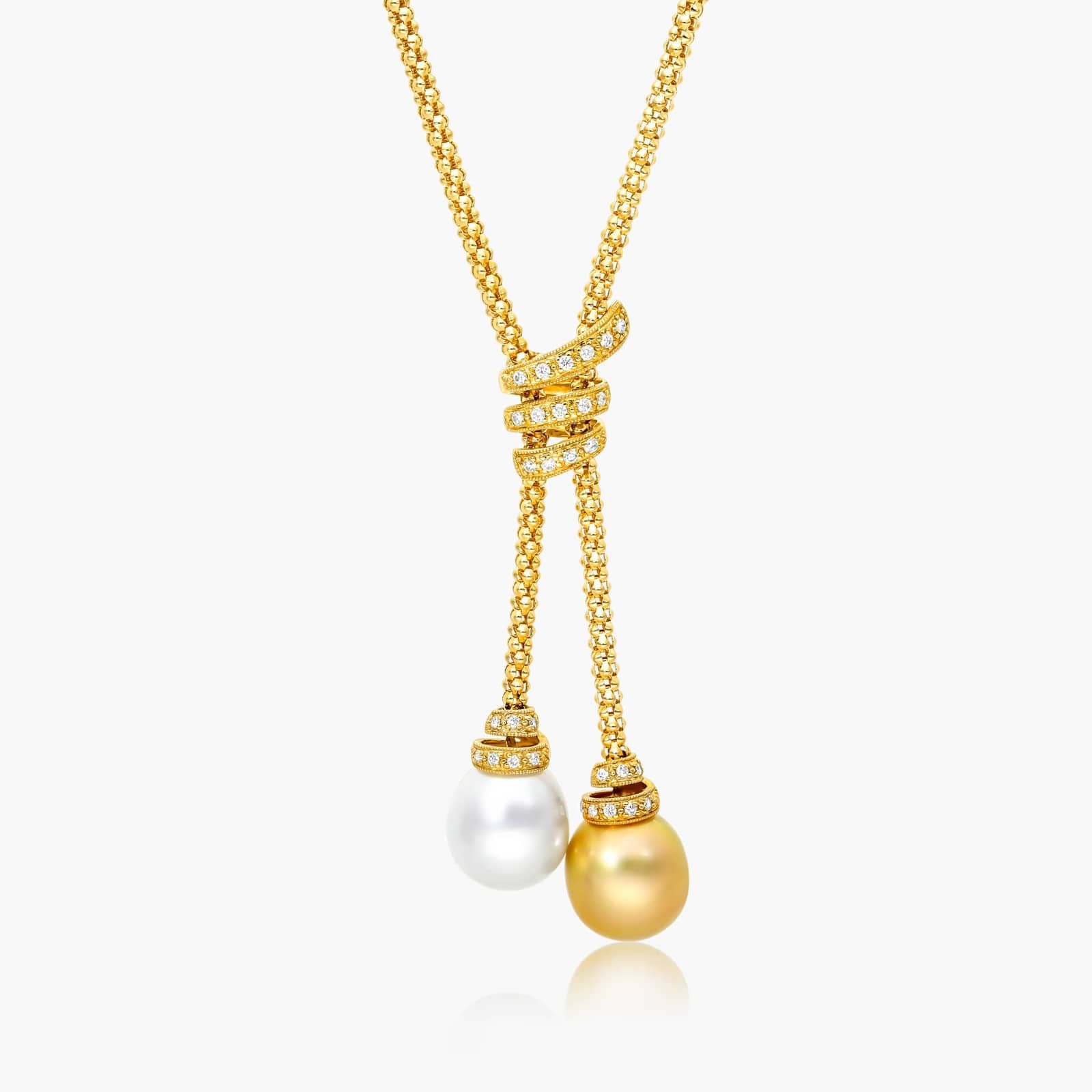 18K Yellow Gold Lariat Diamonds and White & Golden South Sea Cultured Pearl Necklace By James Allen