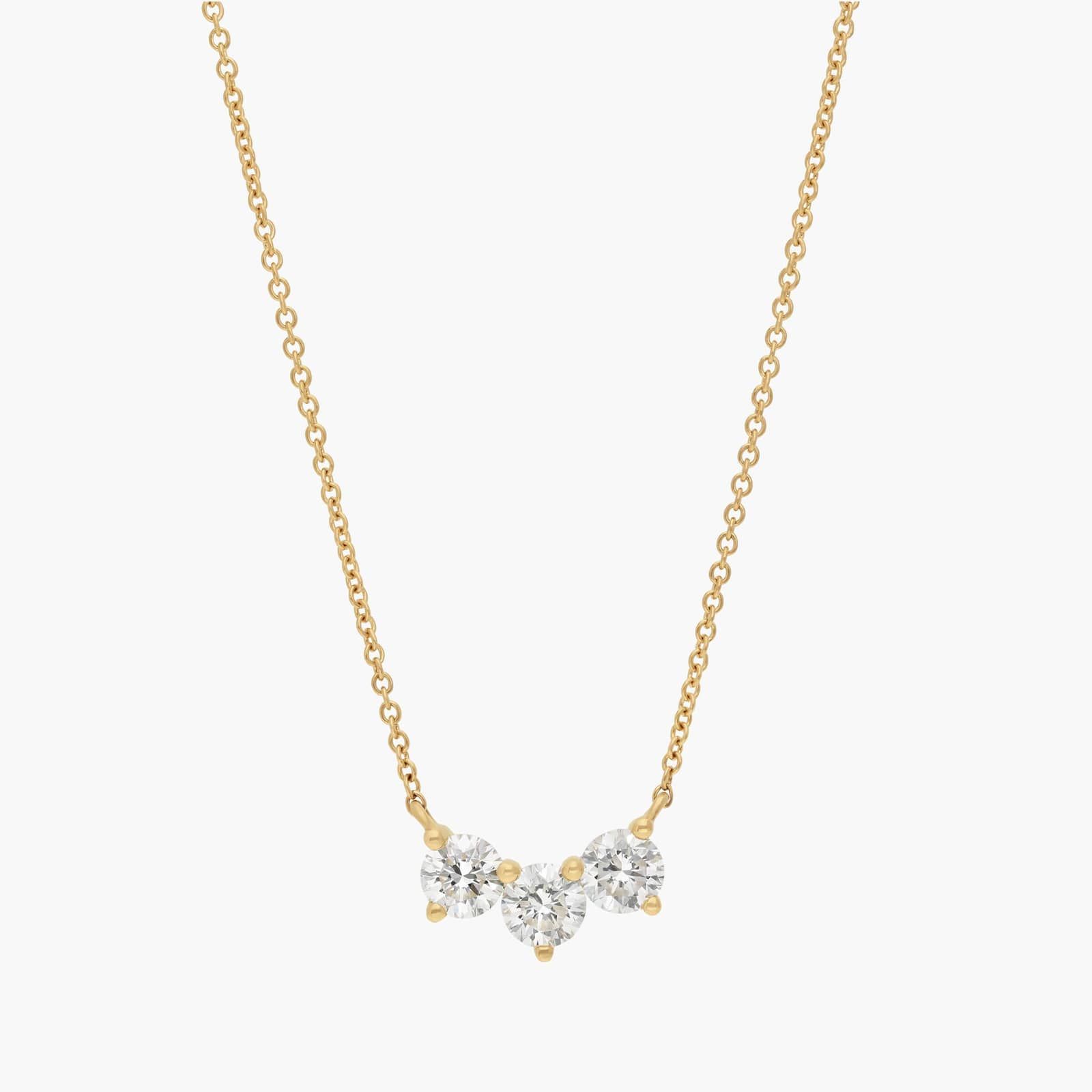 3 Stone Diamond Necklace with 1 CTW Round Cut Lab-Grown Diamonds in 14K Yellow Gold