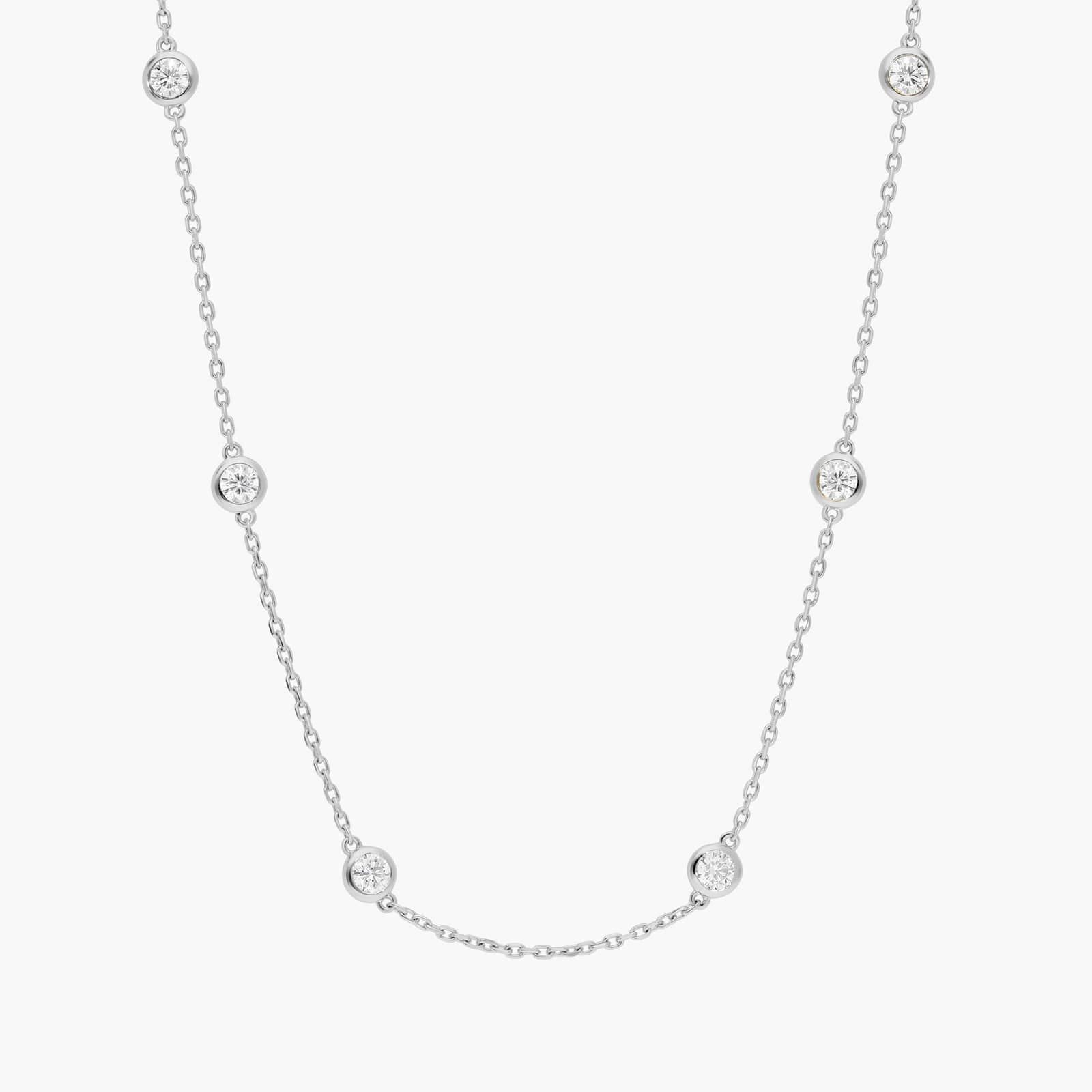 Bezel Set Diamond Station Necklace with 1 CTW Round Cut Lab-Grown Diamonds in 14K White Gold