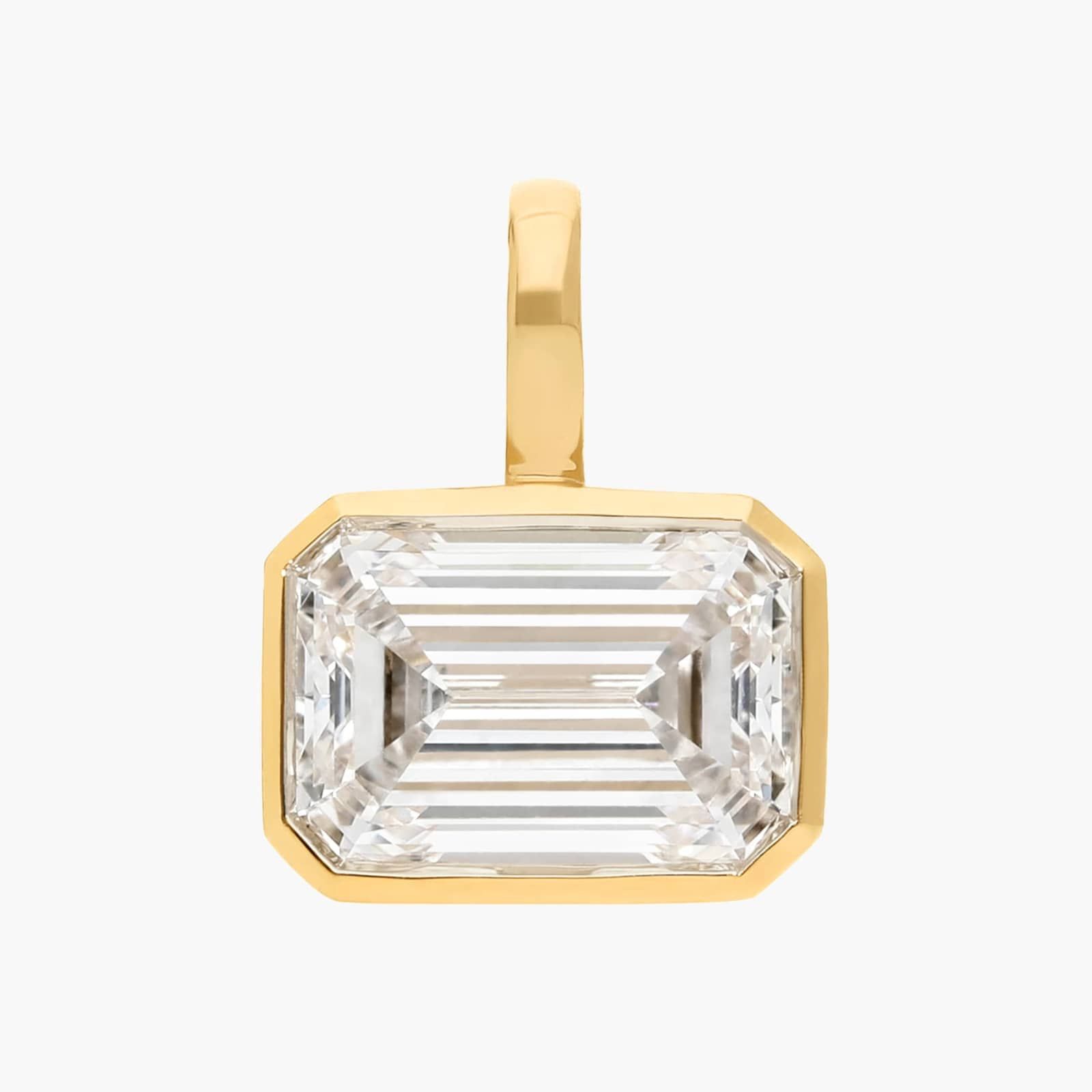With a bezel set emerald cut lab-grown diamond and 14k yellow gold details, this pendant brings effortless style. Add it to your favorite chain or give it as a shining gift. Chain sold separately.