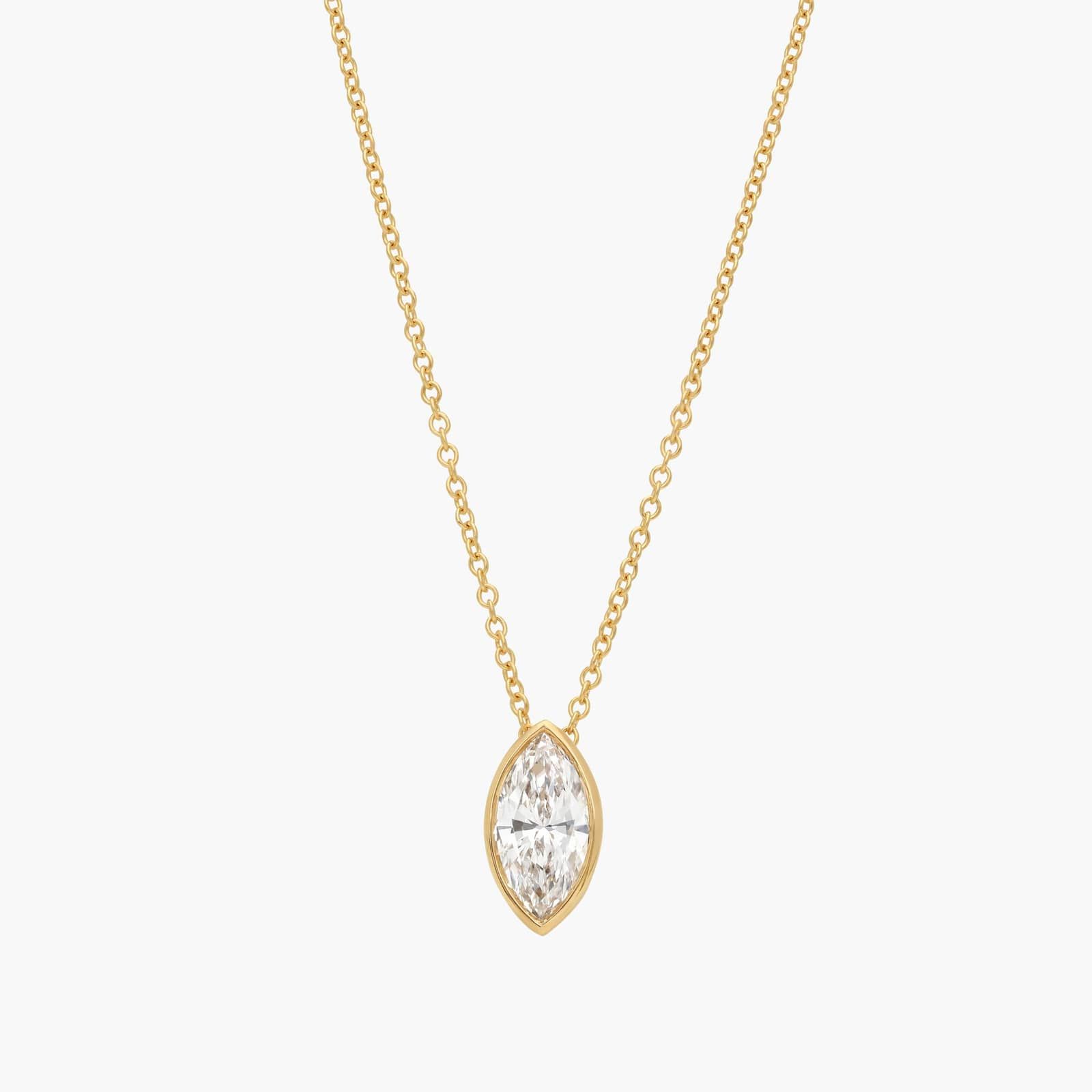 Bezel Solitaire Pendant Necklace With 1 CTW Marquise Cut Lab-Grown Diamonds in 14K Yellow Gold By James Allen