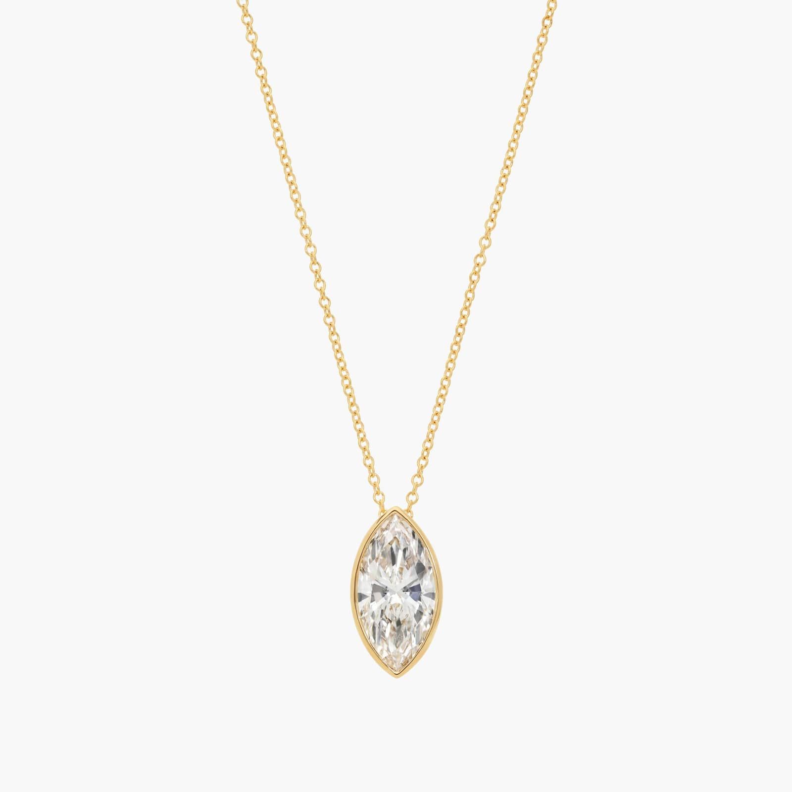 Bezel Solitaire Pendant Necklace With 3 CTW Marquise Cut Lab-Grown Diamonds in 14K Yellow Gold By James Allen