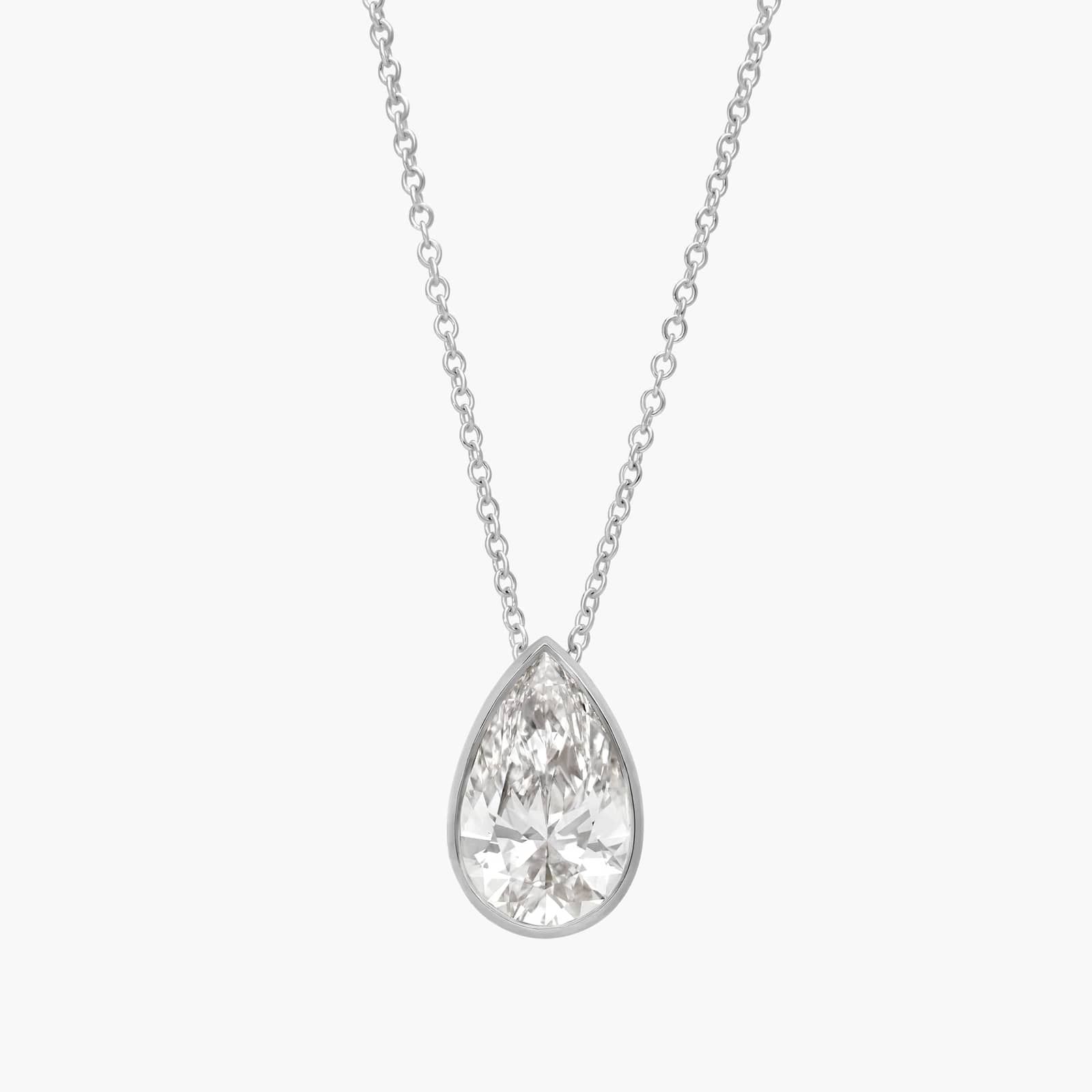 Bezel Solitaire Pendant Necklace With 3 CTW Pear Shaped Lab-Grown Diamond in 14K White Gold By James Allen
