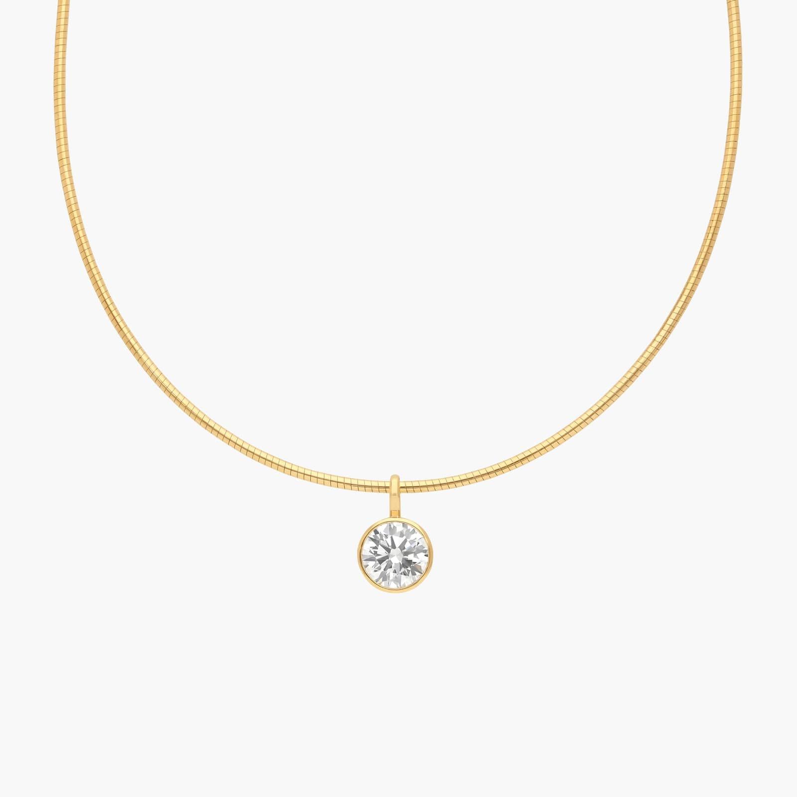 This 14k yellow gold collar necklace features a round cut lab-grown diamond pendant for sparkling style. Wear it on its own or as part of a necklace stack.