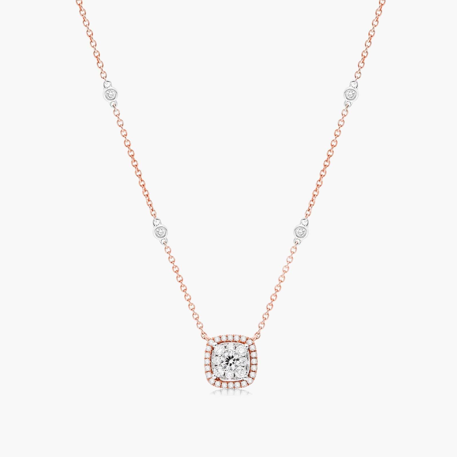 Cushion Halo Cluster Diamond Necklace In 14K Rose Gold By James Allen