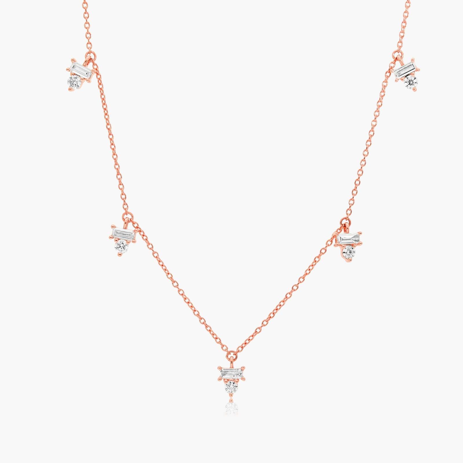 Sparkle from a mile away with this effortlessly chic diamond necklace. This modern and clean design showcases stations of stacked round and baguette Lab-Grown diamonds along the cable chain.