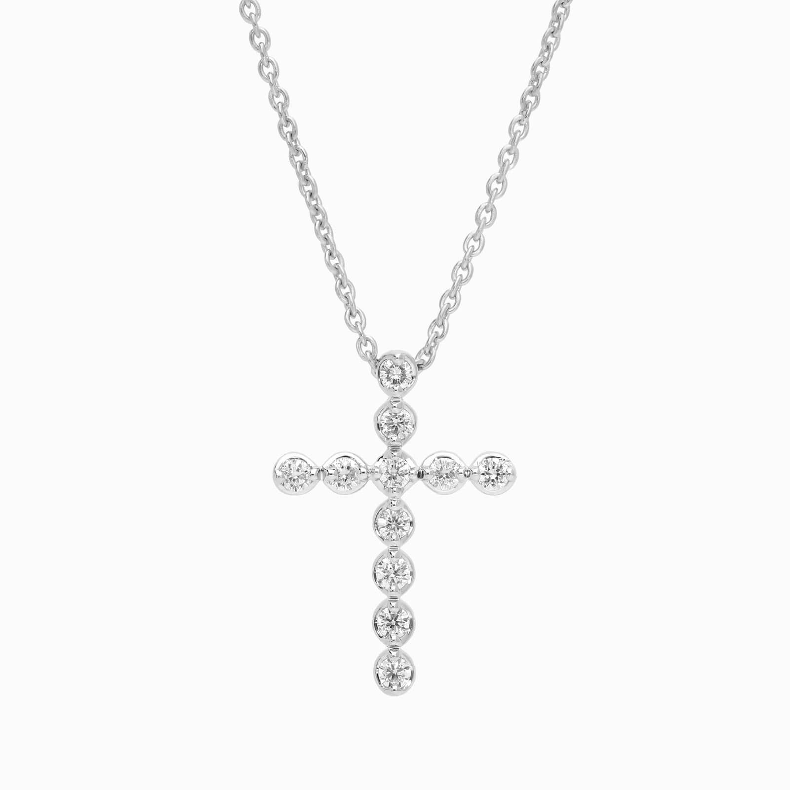 Honor your faith with this symbolic lab-grown diamond cross pendant. It features round cut lab-grown diamonds and 14k white gold design.