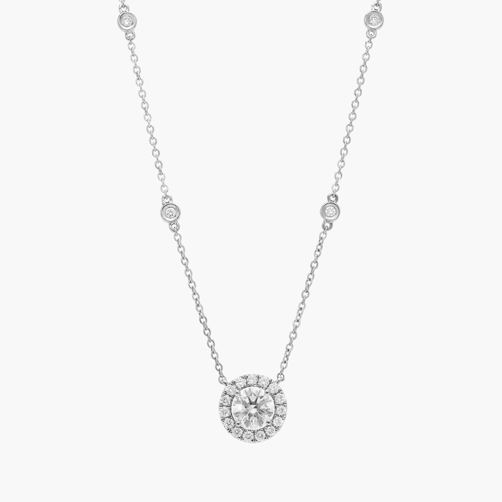 A halo lab-grown diamond pendant and sparkling stations make this necklace a stylish piece for any occasion. Wear it on its own, add it to a necklace stack or give it as a sparkling gift.