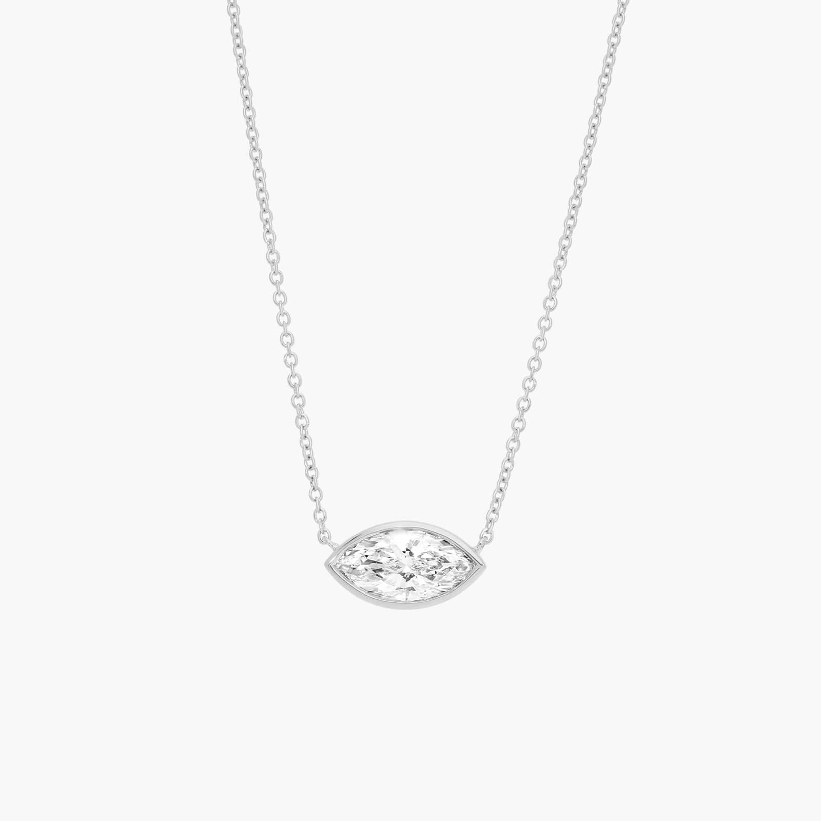 Wear an updated take on classic style with this marquise cut east-west bezel lab-grown diamond solitaire pendant. With 14k white gold design and bezel details, it's perfect for solo styling or necklace layering.