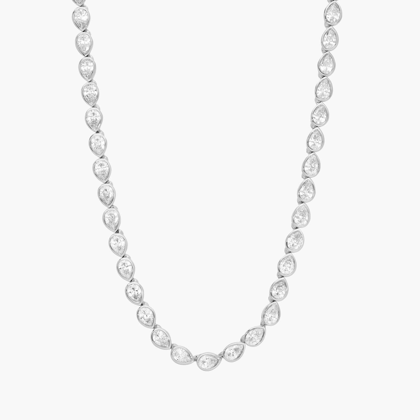 Tennis necklaces are endlessly brilliant and easy to accessorize. This east-west pear shaped lab-grown diamond tennis necklace features 14k white gold details and bezel settings for classic style. Wear it as a signature solo piece or as the focal point in a necklace stack. It's also a leading gift for any occasion.