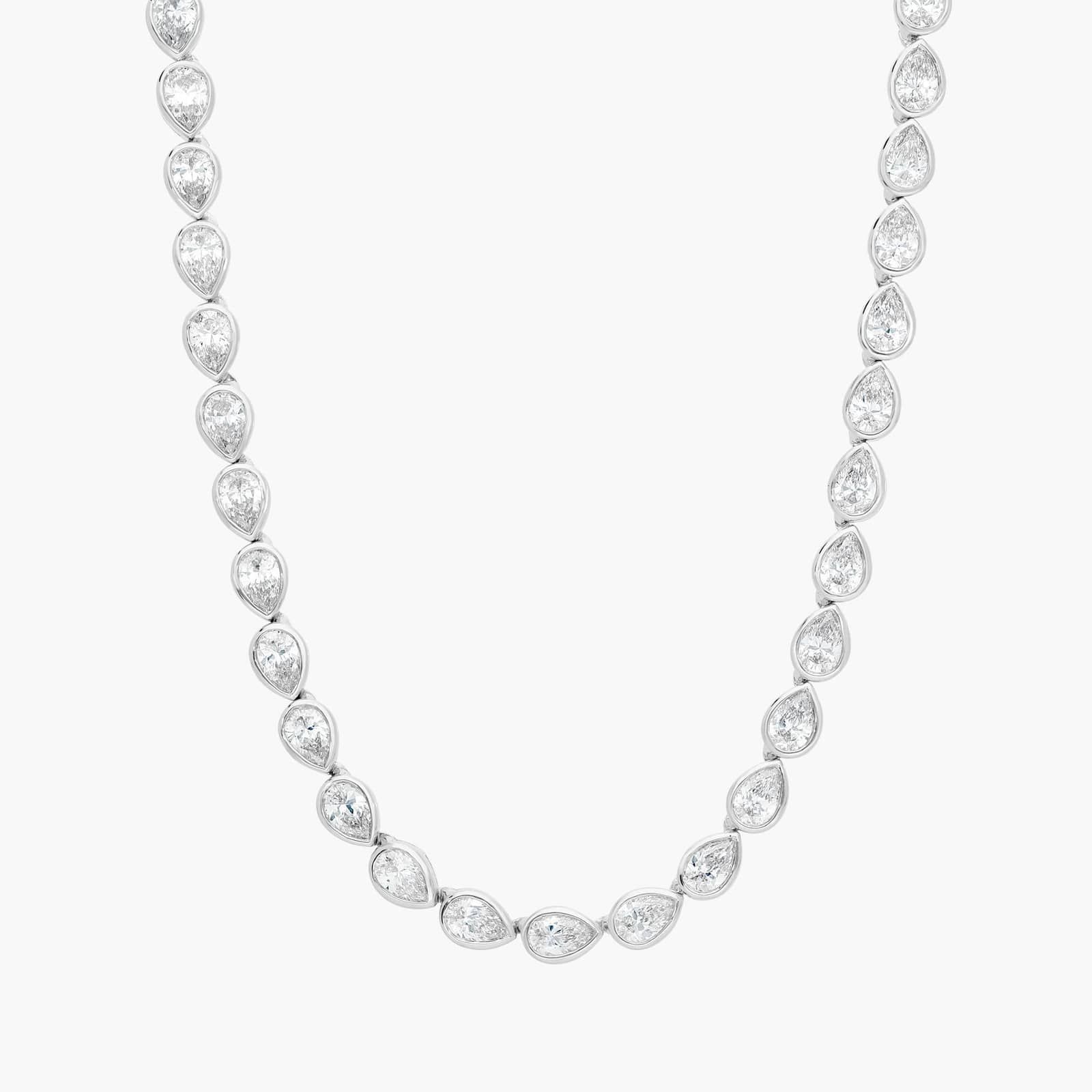 Tennis necklaces are endlessly brilliant and easy to accessorize. This east-west pear shaped lab-grown diamond tennis necklace features 14k white gold details and bezel settings for classic style. Wear it as a signature solo piece or as the focal point in a necklace stack. It's also a leading gift for any occasion.