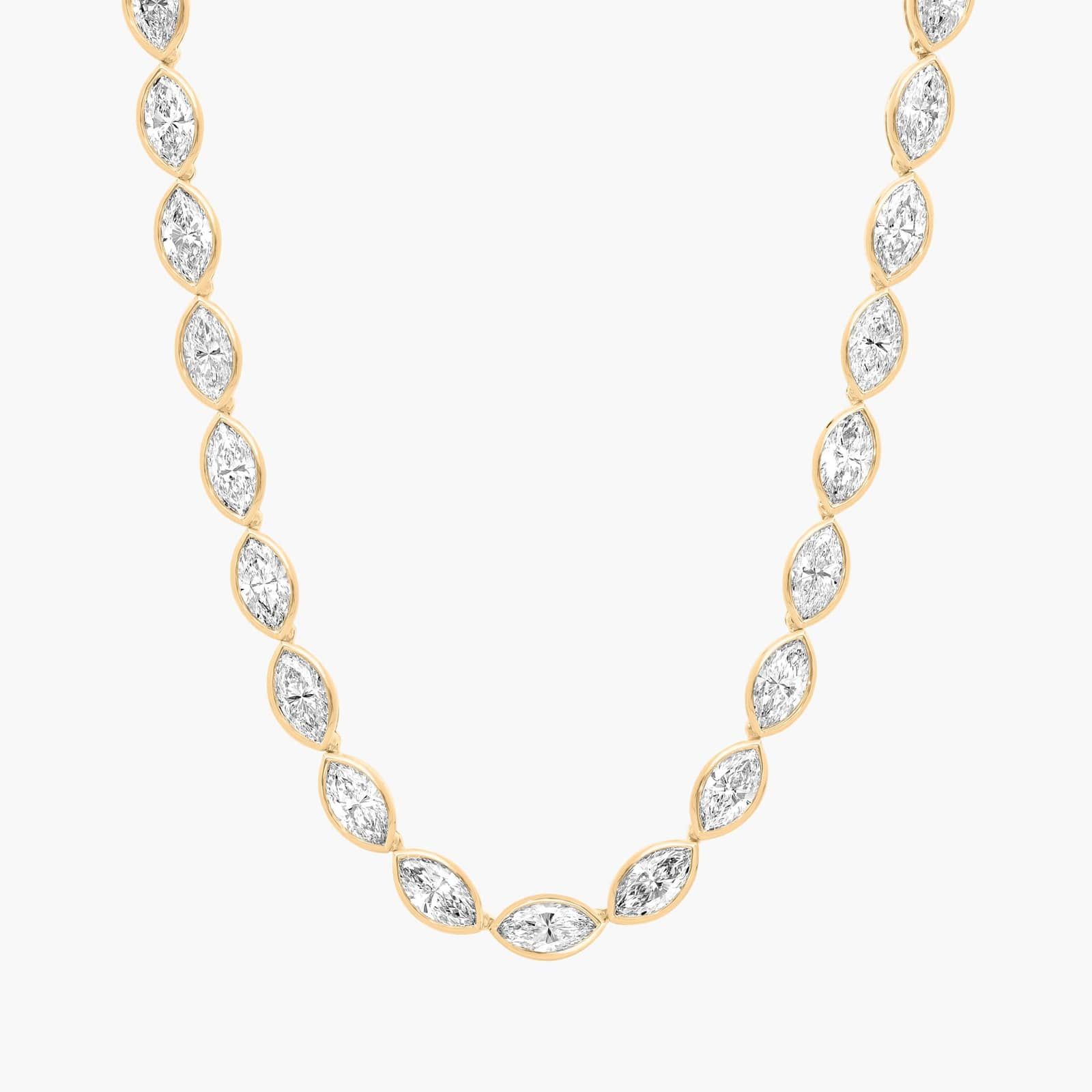 Tennis necklaces are endlessly brilliant and easy to accessorize. This east-west marquise cut diamond tennis necklace features 14k yellow gold details and bezel settings for classic style. Wear it as a signature solo piece or as the focal point in a necklace stack. It's also a leading gift for any occasion.