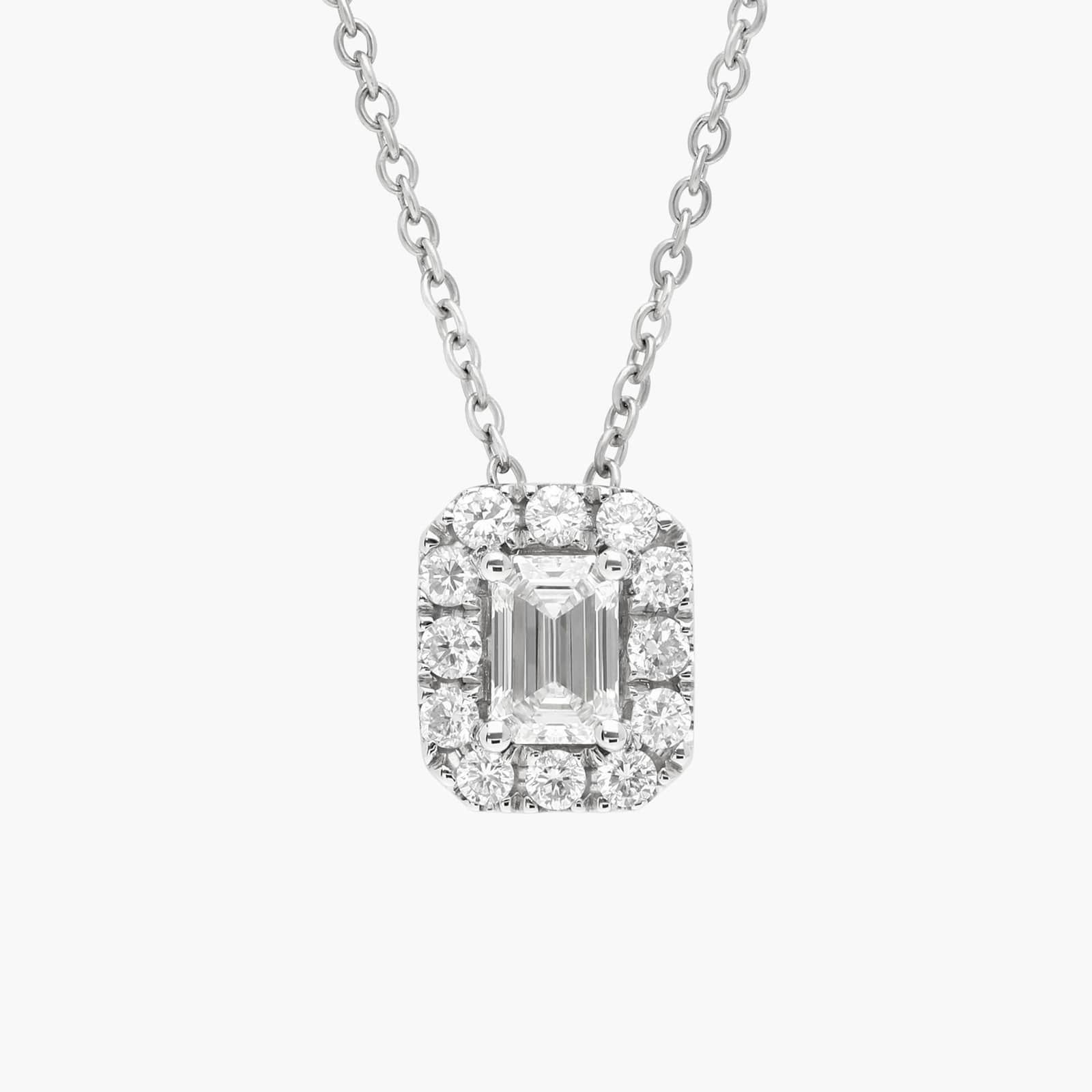 Emerald Shaped Diamond Halo Pendant with 0.75 CTW Emerald and Round Cut Lab-Grown Diamonds in 14K White Gold