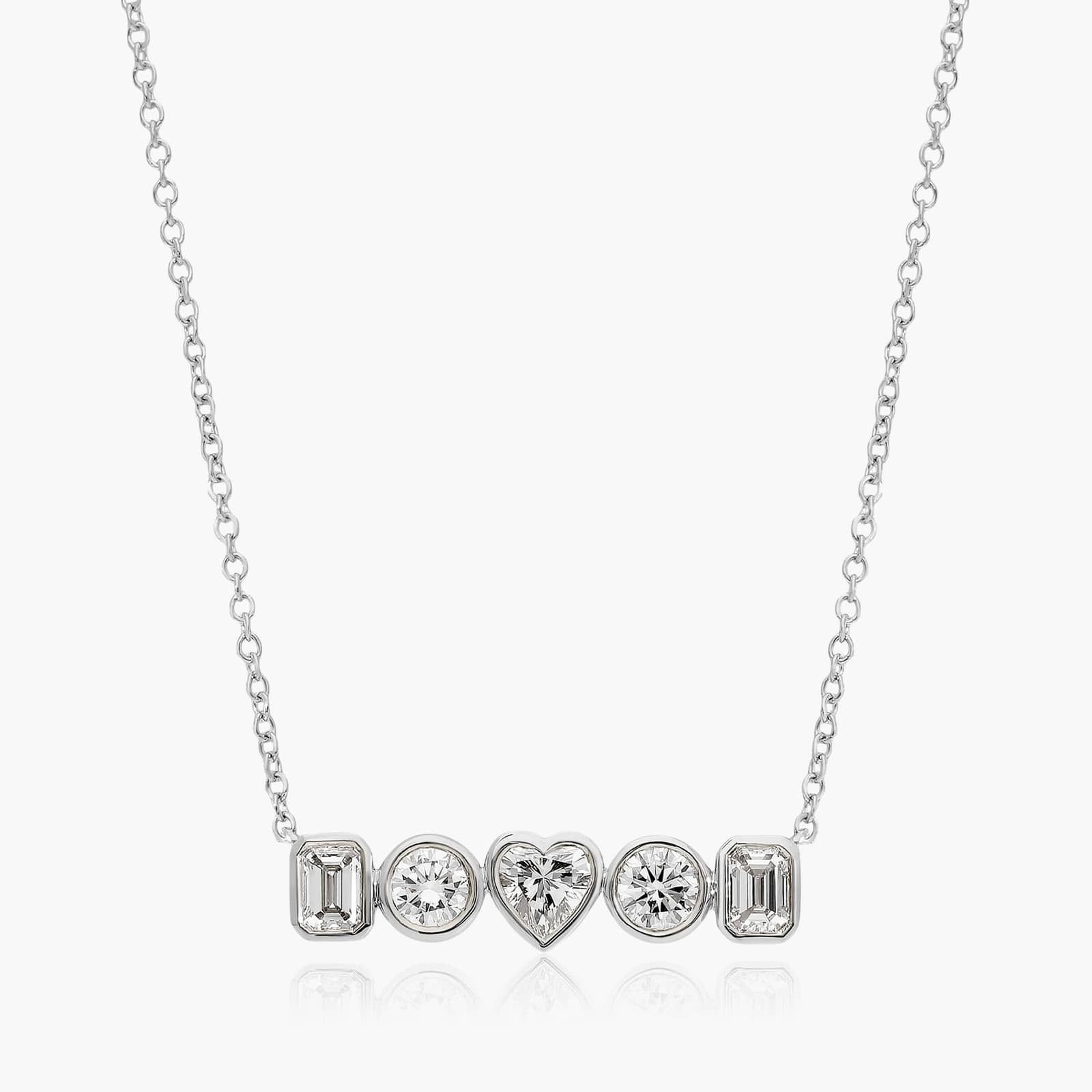 This brilliant necklace features multiple diamond shapes securely placed in a bezel setting. Perfect for every day, this setting hides inclusions and is low maintenance.