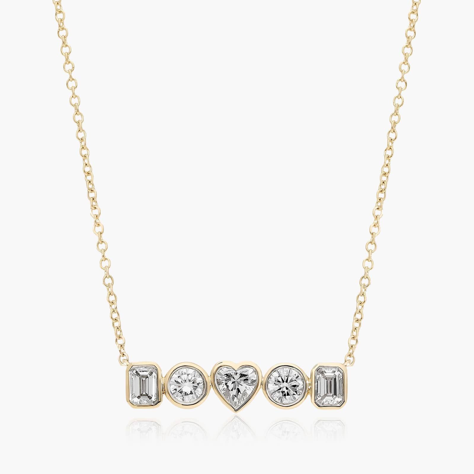 This brilliant necklace features multiple diamond shapes securely placed in a bezel setting. Perfect for every day, this setting hides inclusions and is low maintenance.