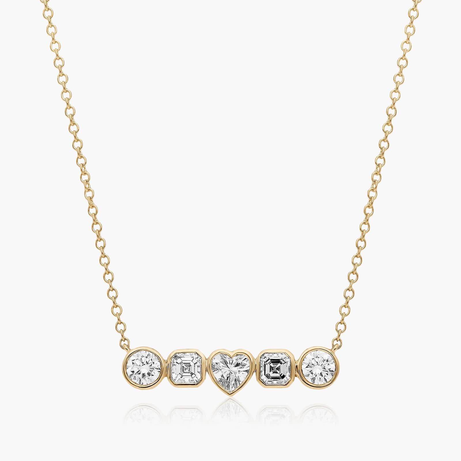 Fancy Bezel Pendant With Round, Asscher, And Heart Shaped Lab-Grown Diamonds In 14K Yellow Gold