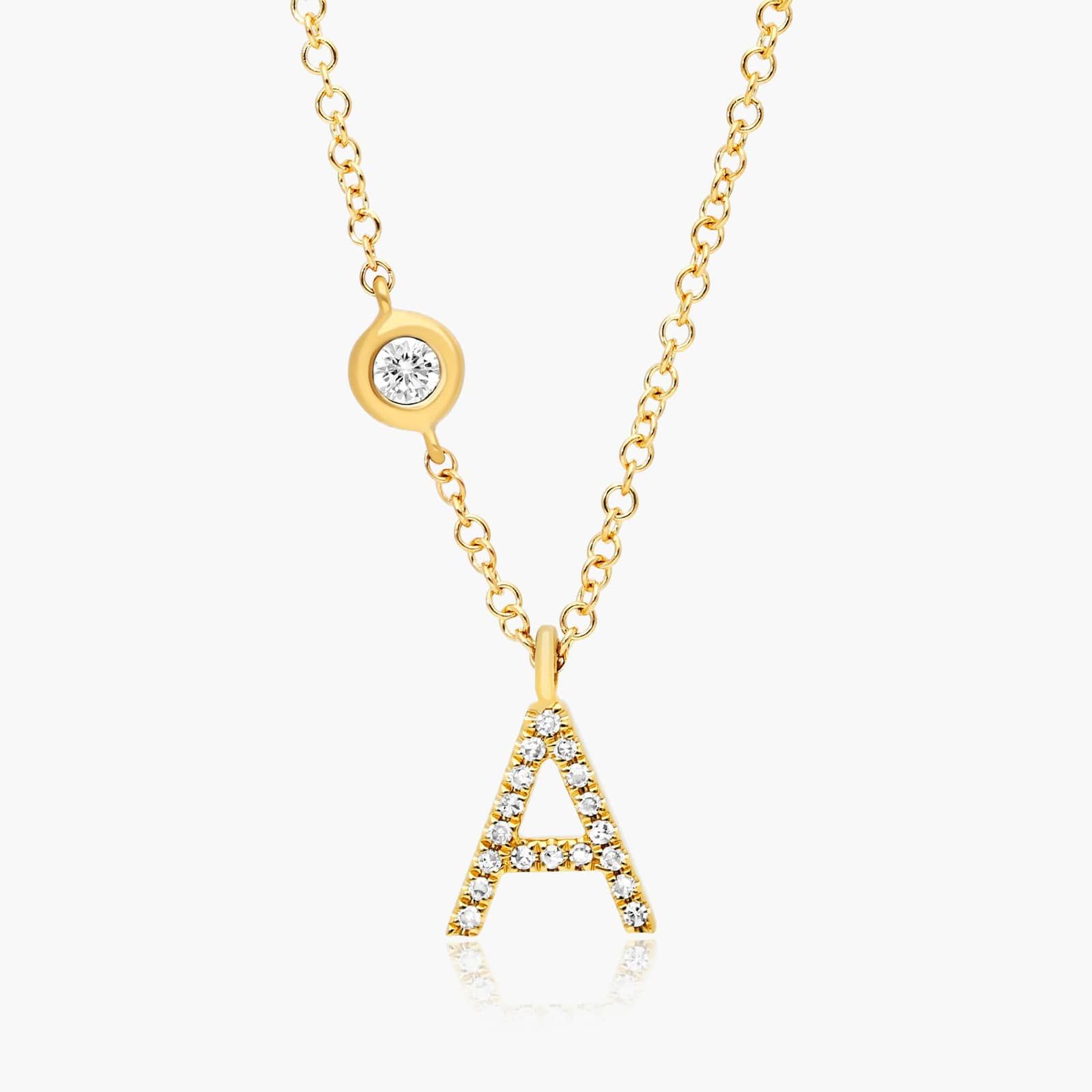 Initial A Diamond Necklace In 14K Yellow Gold