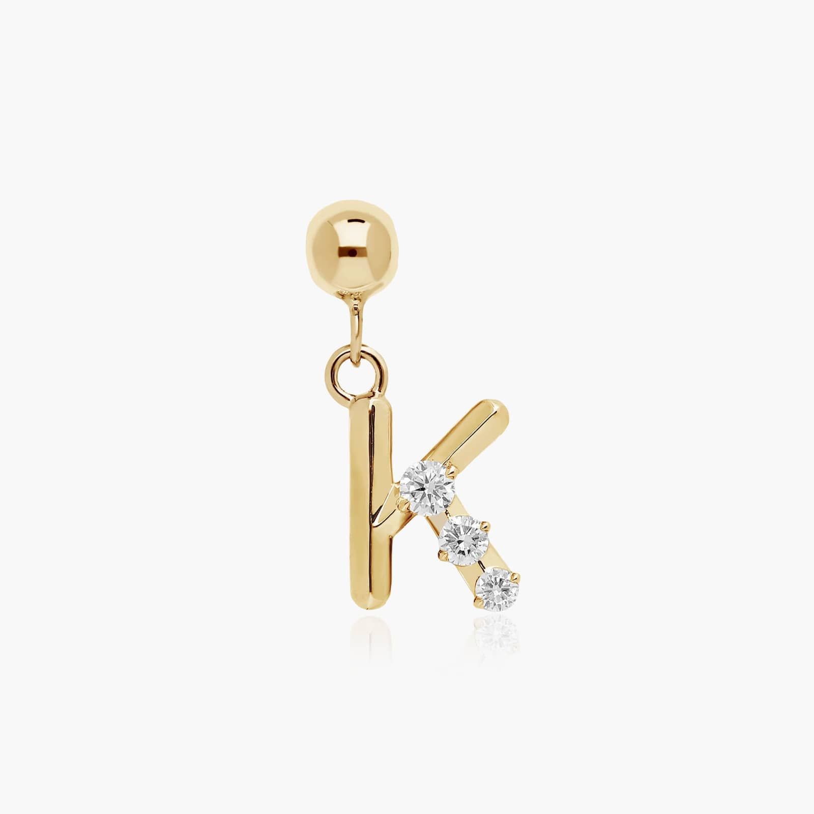 This initial is a true collectible charm! Featuring perfect diamond detail, this playful 14K Yellow Gold K Initial Lab Grown Diamond Charm makes a perfect personalized gift. Wear it alone to shine in the spotlight or wear multiple to spell out your favorite word. You're going to want one for every letter of the alphabet. Chain sold separately. Charms fit only on James Allen's Silicone Bead Slider Charm Chain