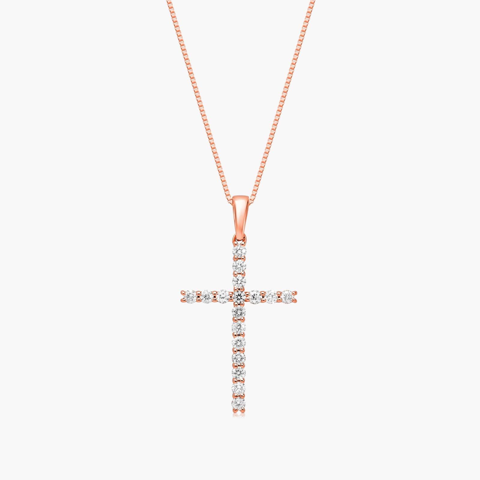Lab-Grown Diamond Cross Pendant In 14K Rose Gold