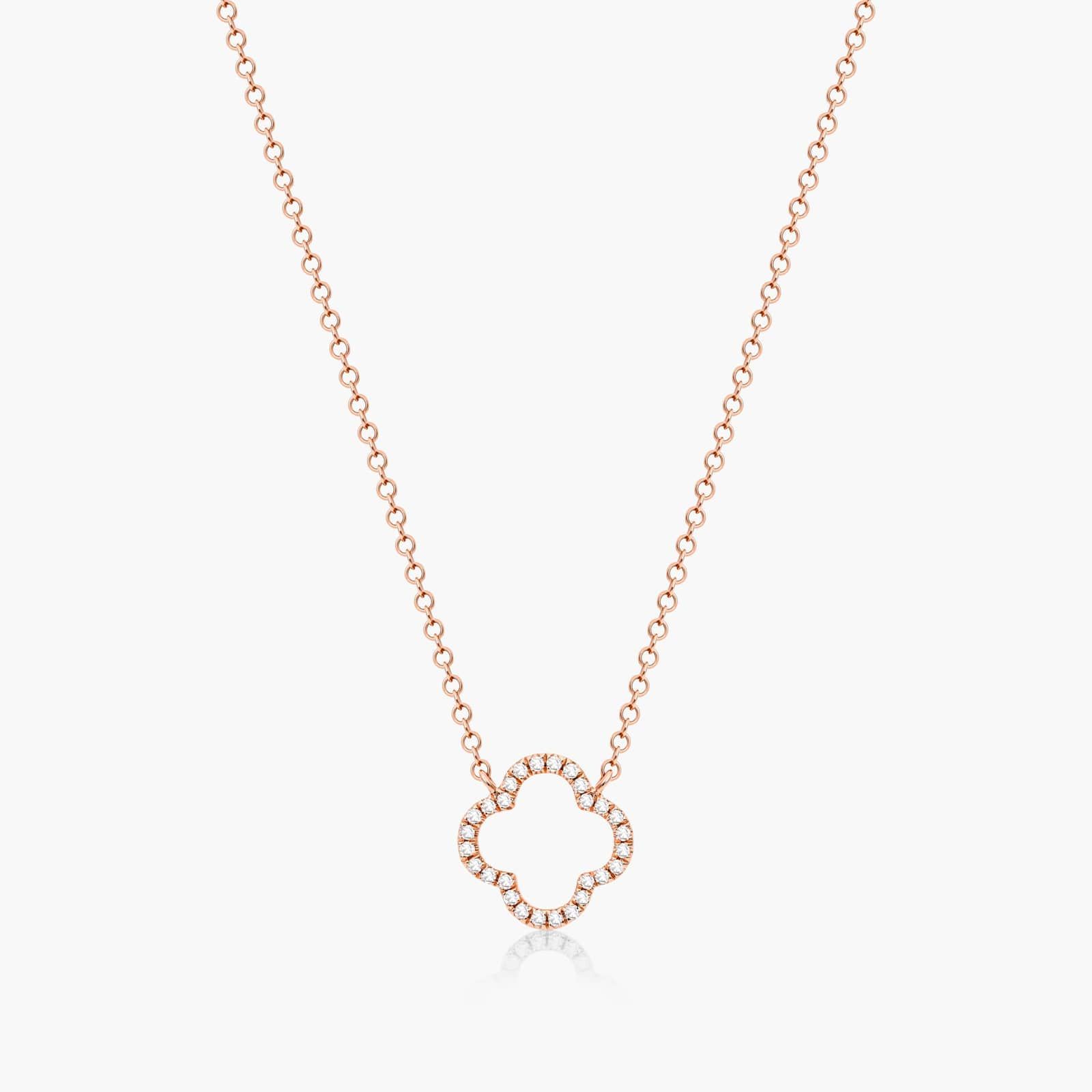 A classic symbol of luck, the four-leaf clover is said to bring health, fortune, and love to its owner. Perfect for everyday wear, add a little luck to your life with this open diamond clover necklace crafted in 14K rose gold.