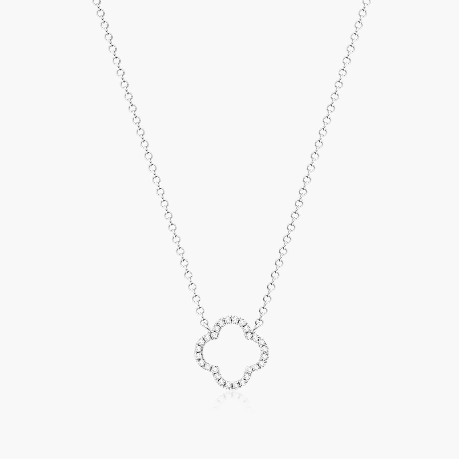 A classic symbol of luck, the four-leaf clover is said to bring health, fortune, and love to its owner. Perfect for everyday wear, add a little luck to your life with this open diamond clover necklace crafted in 14K white gold.