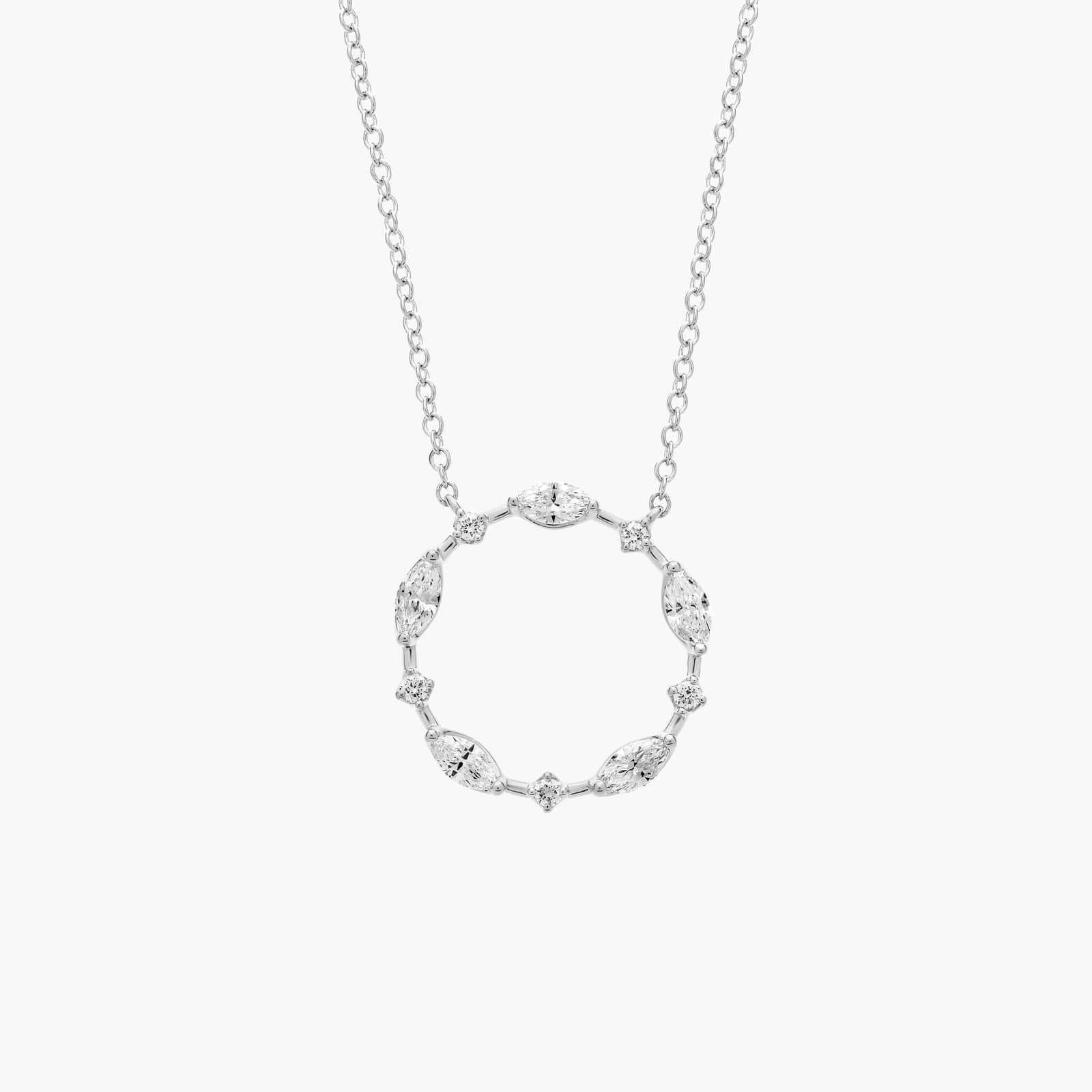 Marquise and Round Alternating Diamond Circle Necklace in 14K White Gold