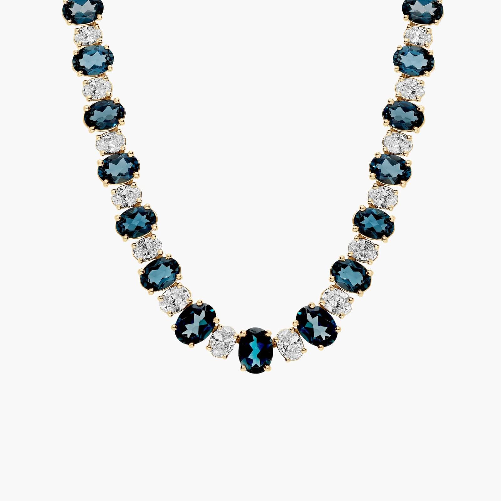 Oval Cut Diamond and Blue Topaz Alternating Eternity Necklace in 14K Yellow Gold