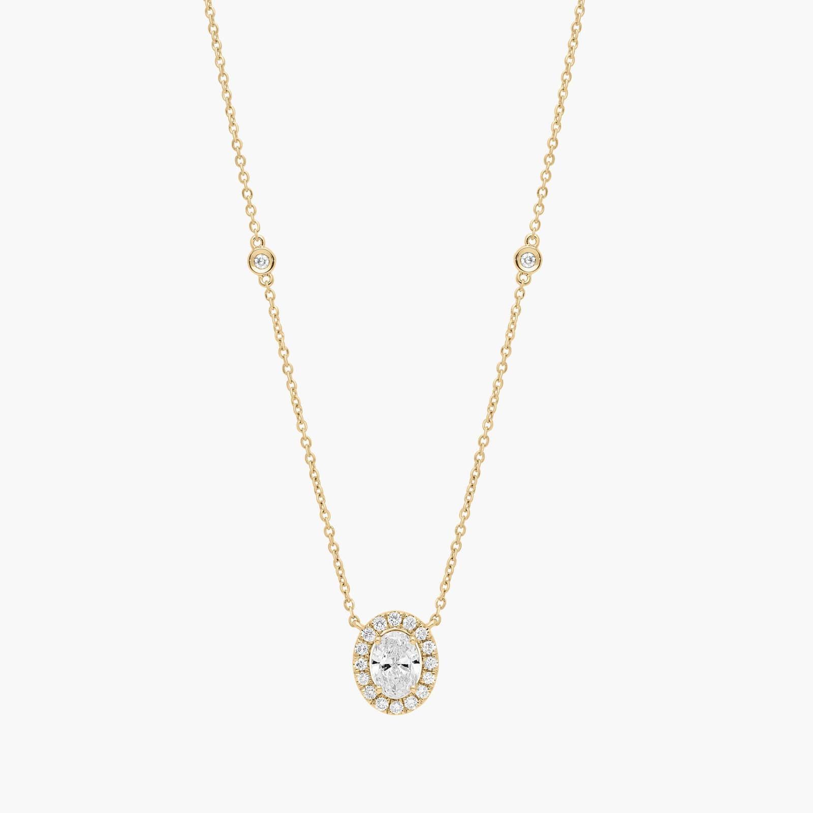Oval Diamond Halo Pendant and Station Necklace with 1 CTW Oval and Round Cut Lab-Grown Diamonds in 14K Yellow Gold