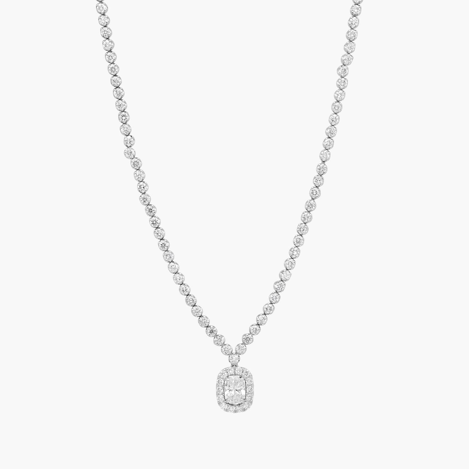 Oval Drop Diamond Halo Necklace with 5 CTW Oval and Round Cut Lab-Grown Diamonds in 14K White Gold