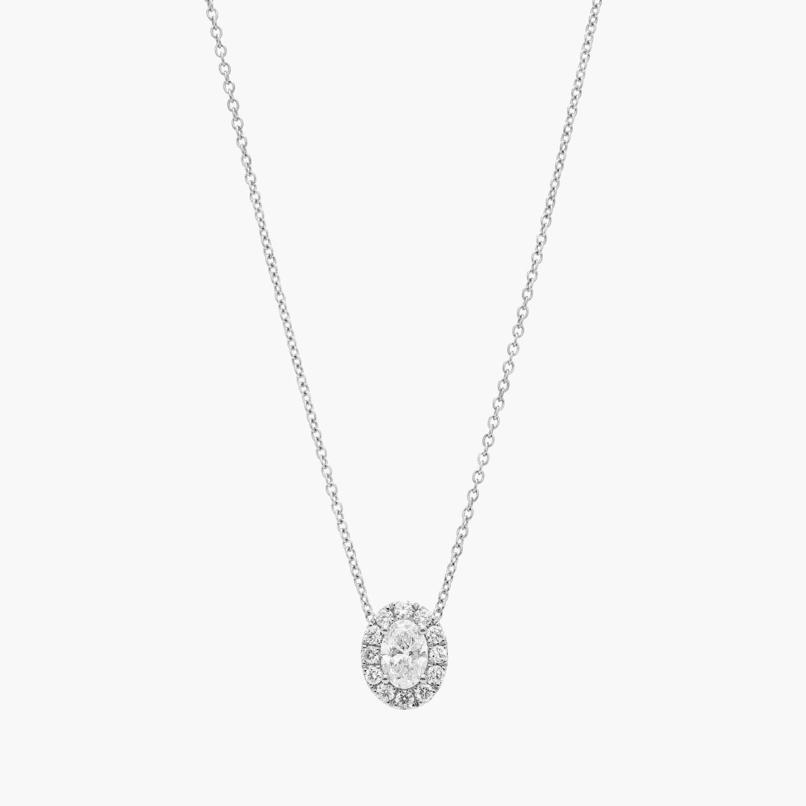 Oval Shaped Diamond Halo Pendant with 0.75 CTW Oval and Round Cut Lab-Grown Diamonds in 14K White Gold